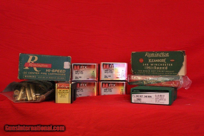 Description: Winchester M71 Deluxe 348WIN SN: 19551, with adjustable Peep sight. Looks to be original blue and finish. Nice rifle with small handling marks and small rust spots on top right hand part of the receiver. We are selling this for an estate and therefore do not know the history on this gun. Rifle $3800.00 + Shipping $70.00 UPS Ground Service in cardboard box with bubble wrap to lower 48. For an additional $ 30.00 we will place it in a hardcase and box. RCBS FL dies, 15 rounds High Speed Remington 150gr Soft point Kleanbore ammo and 1 piece of brass; 1 box Remington Express 200 gr Kleanbore ammo; 7 rounds Remington 200 gr Corelokt and 38 Barnes 220gr bullets; Hornady 200 gr FTX 3 unopened boxes and 1 opened but full box of bullets. $300.00+ shipping $45.00 for Dies, brass, ammo and bullets. Rifle Caliber: .348 Winchester Price: $3,800.00 Contact Seller |