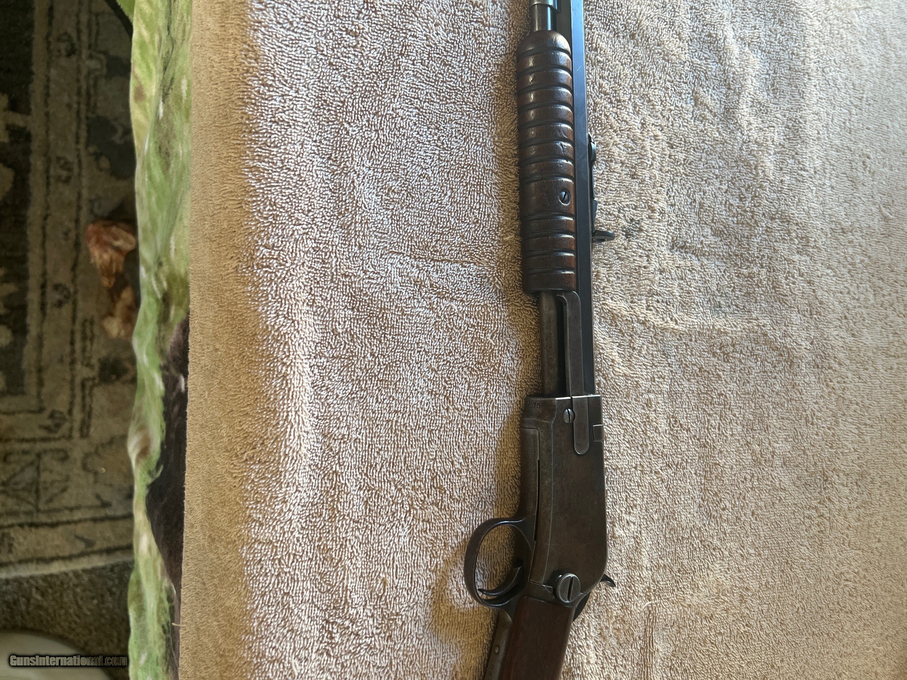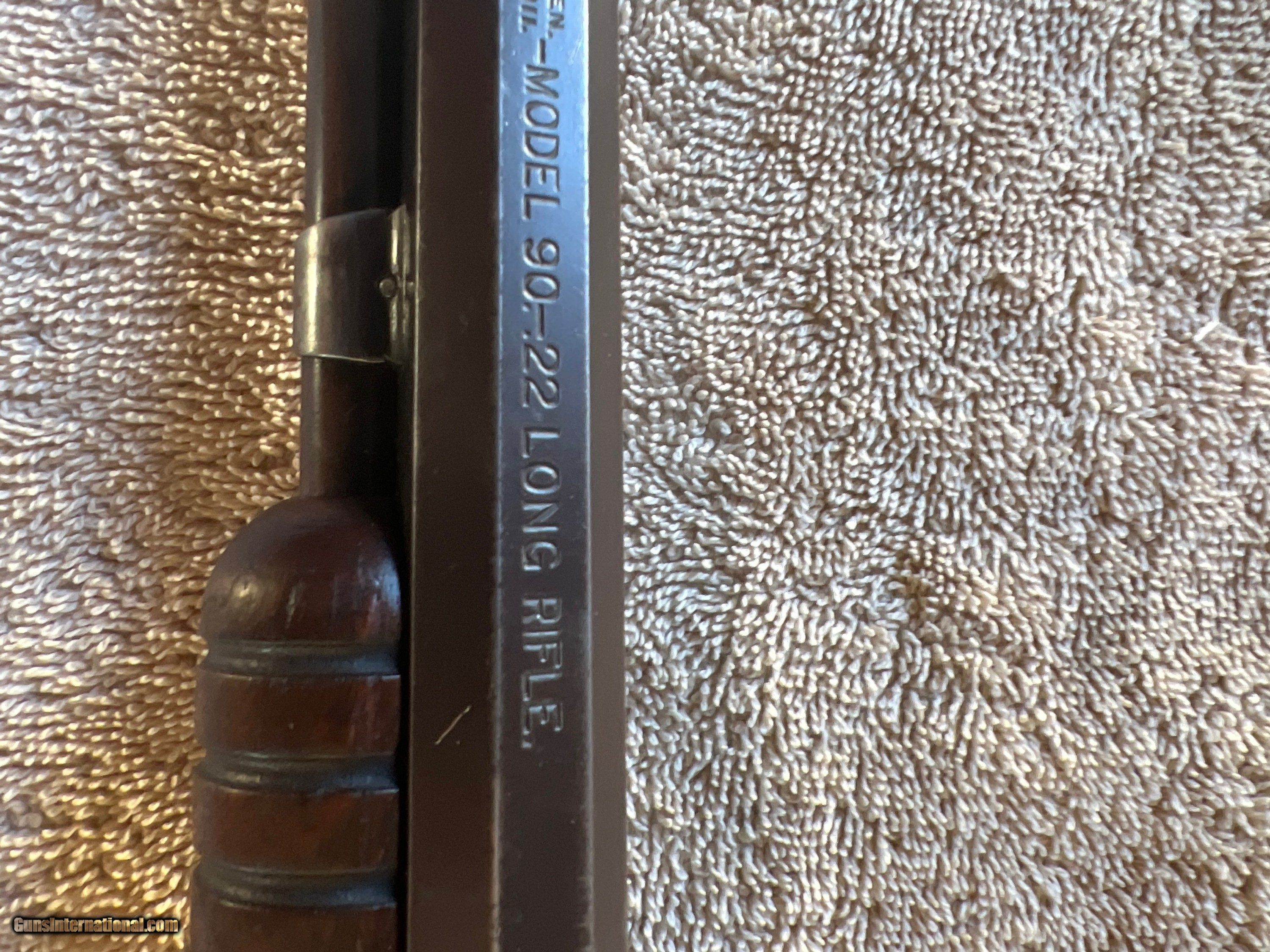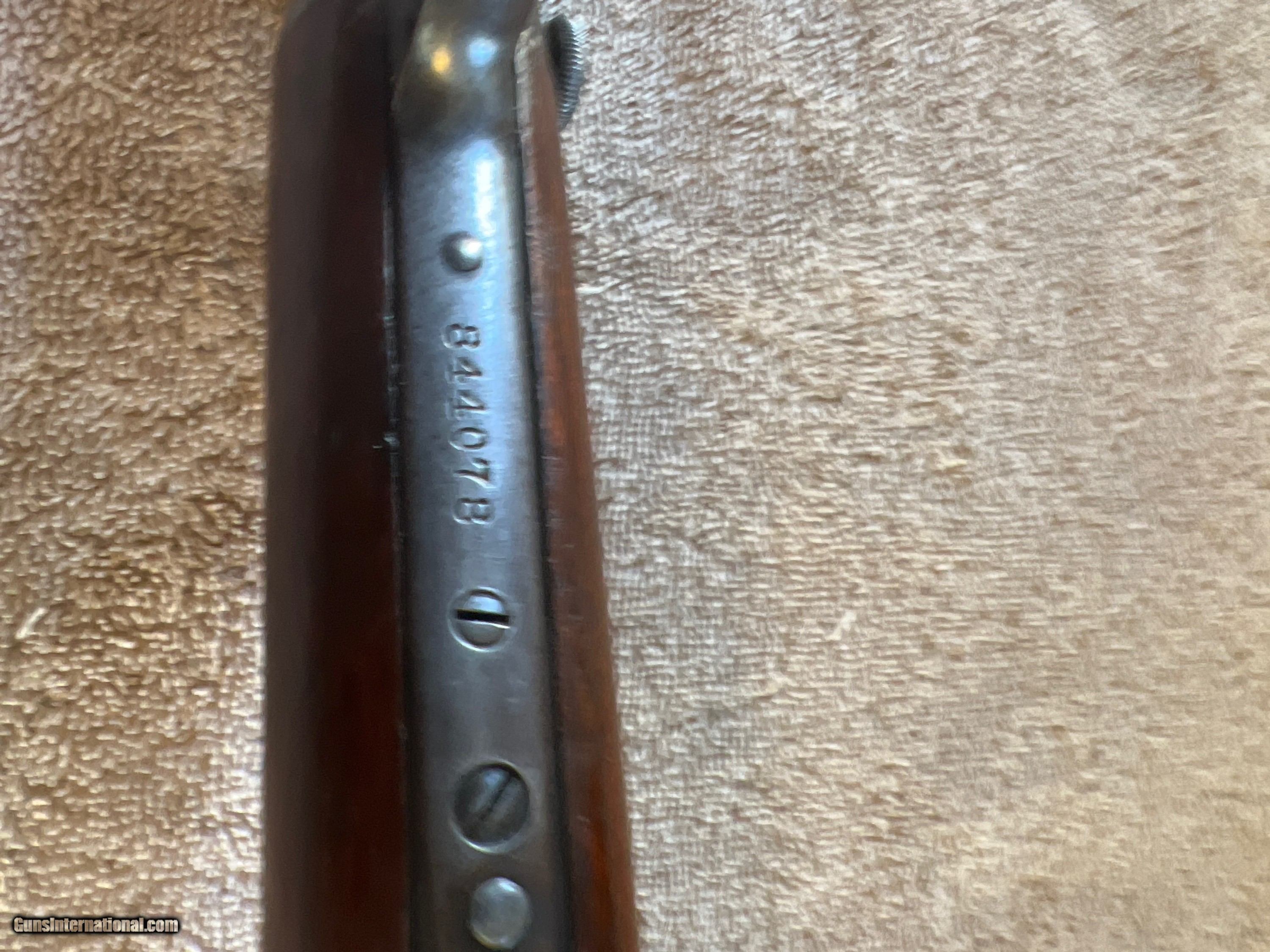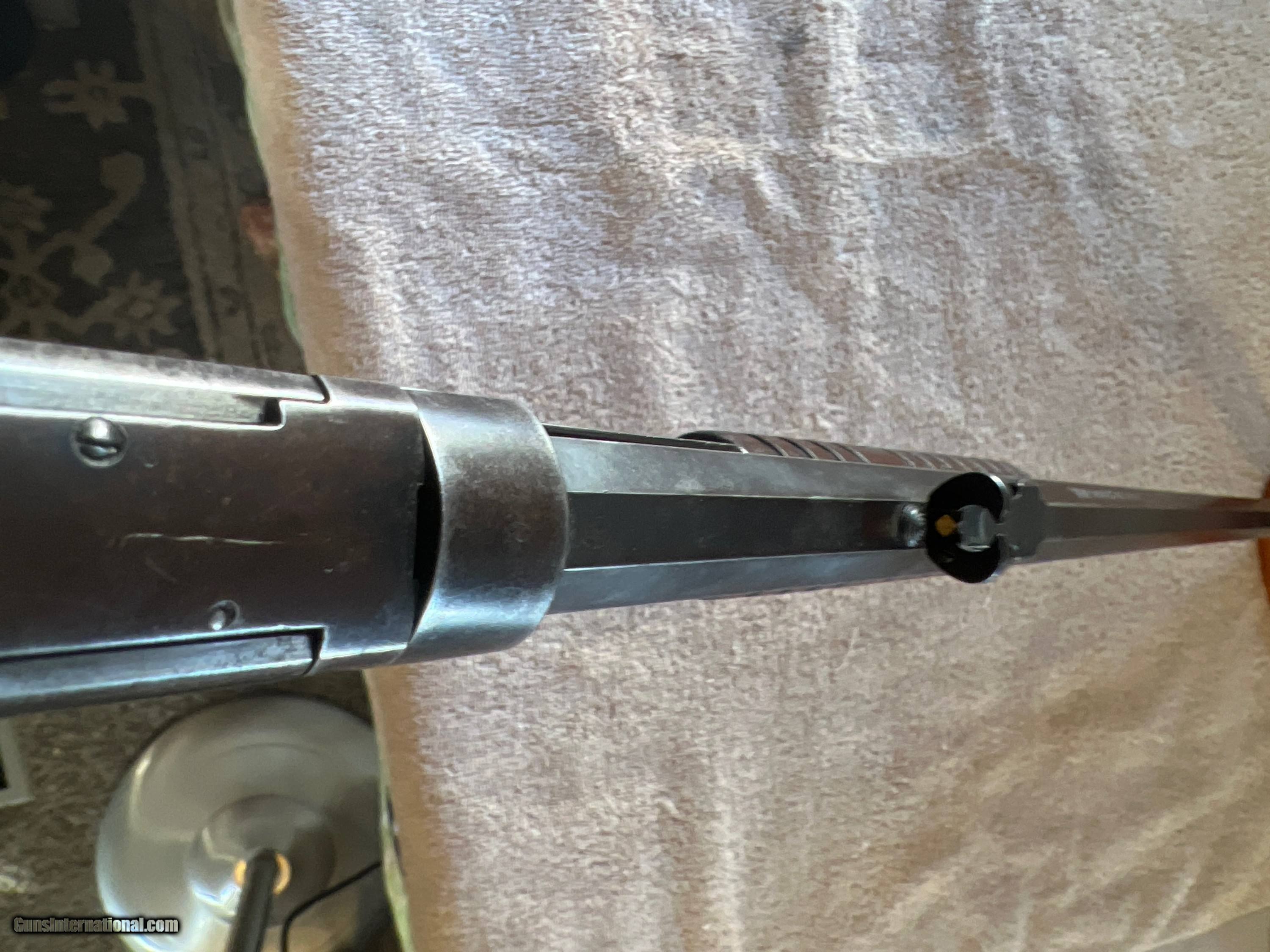 Description: This is a 1931 true model 90 22 LONG RIFLE. A real piece of American history which has the Gladstone Buckhorn diamond rear sight which makes this rifle even more rare. Normal ware for a rifle that is 91 years old. Rifling is clear and bore is shiny as a diamond. Serial number 844078. Perfect operating condition. Bluing and stock are in very good condition. Definitely a collectors gun. Please contact seller with any questions or photographs. Hate to sell but have to SOLD Rifle Caliber: .22 Long Rifle Manufacturer: Winchester Model: 1890 Serial Number: 844078 Chambers: Single Condition: Very good Metal Condition: Very good with patina Wood Condition: Very good Bore Condition: Excellent Barrels: Octagon Action: Slide Stock: Wood Butt Pad: Steel crescent Finish: Blue Sights: Standard front. Gladstone buckhorn diamond rear Manufacture Date: 1931 Item Location: Idaho |