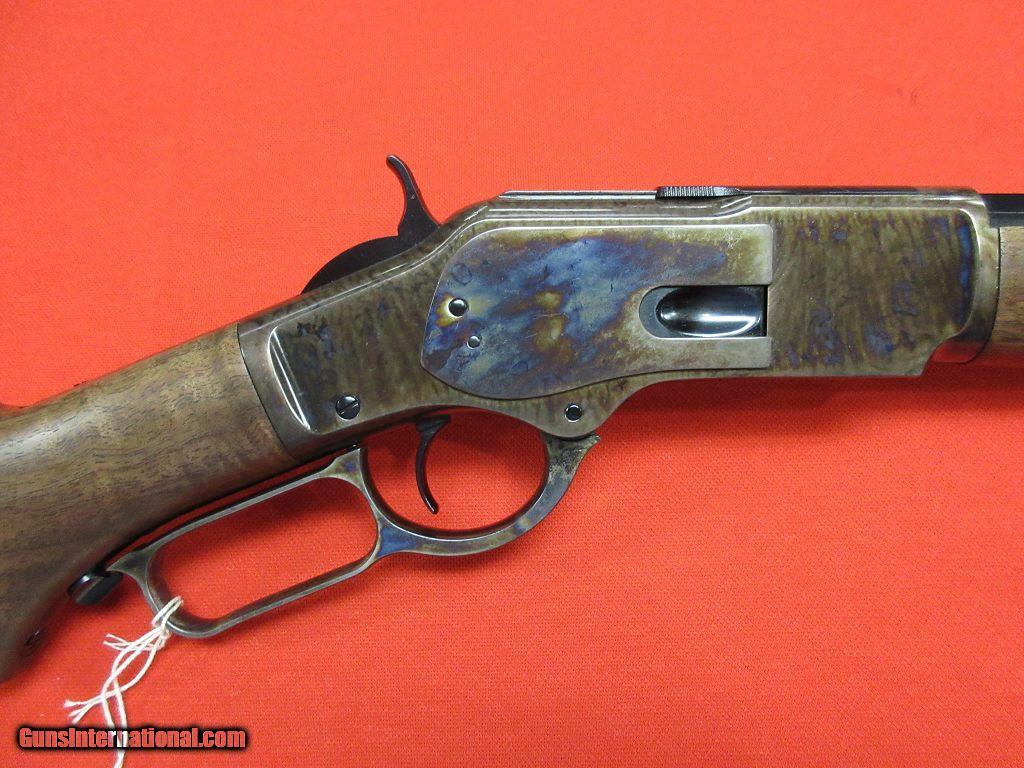 Description: Winchester Model 1873 Grade III 357Magnum 24" (NEW)-- Case colored receiver with highly figured stock and forend, octagonal barrel with a full-length magazine tube, gold bead front sight, buckhorn rear sight with elevator, case colored crescent steel buttplate. This is one sharp looking rifle. Remember this is now a legal firearm for Ohio deer season. SOLD |