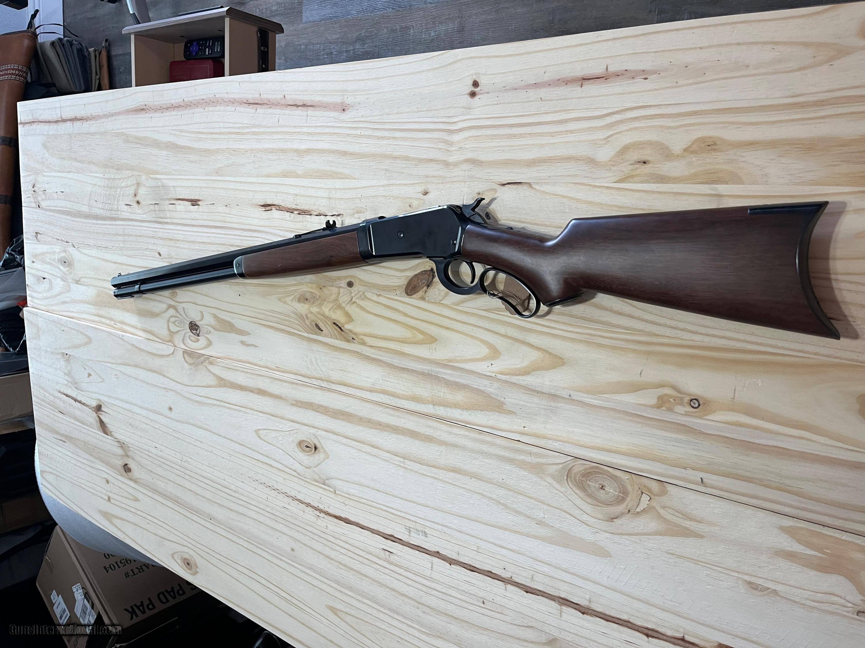 Description: WINCHESTER MODEL 1886 LEVER ACTION TAKEDOWN RIFLE SER# 01461NP343 . CALIBER 45-70 GOV'T . GUN APPEAR UNFIRED. 26 INCH OCTAGON BARREL . EXCELLENT BLUE FINISH . EXCELLENT WOOD WIT ONE SMALL HANDLING MARK ON THE FOREND ( SEE PICS) EASTERN BRANCH FIREARMS ADD 50.00 SHIPPING – HANDGUNS SHIP NEXT DAY AIR ADD 50.00 SHIPPING – LONG GUNS SHIP GROUND OPTIONAL INSURANCE IS AVAILABLE AT 1.25 PER 100.00 Questions e-mail or call Glen at Eastern Branch Firearms 207-215-5021 TERMS – PLEASE READ BEFORE I DO NOT HAVE A LAYAWAY OPTION ( WE ACCEPT CREDIT CARDS ) -- I GET ALOT OF REQUEST FOR TRADES, I WOULD PERFER NOT TO DO TRADES ON MY INTERNET LISTINGS PAYMENT OPTIONS- We accept money orders, cashier’s checks , bank checks. sorry no personal checks. We accept all major credit cards please add 3% to the ’s cash discount price.(Shipping within the state of Florida - Florida Residents must pay sales tax) .Handguns and long guns do need to be shipped separate. PLEASE do not send payment via FED EX . USPS & UPS are fine. Thank you. We include a signed copy of our FFL with each firearm shipped. SAFTY NOTICE- Buyer is solely responsible for determining that a used gun is safe to shoot. The firearms offered have not been test fired but have been given a visual inspection only for purposes. It is a requirement that every used firearm is inspected by a qualified gunsmith before firing. By , the buyer agrees to hold seller harmless against damages, injury, or death caused by defective merchandise. RETURN POLICY- All firearms come with a 3-day non firing , non messing with ( turning srews ,taking apart,removing parts, scoping. firing, cleaning or messing with in anyway) inspection/return privilege.Inspection is based on a visual review of the gun to confirm the gun is in the condition stated. In the case of a return, buyer pays all shipping charges & if paid for with a credit card buyer absorbs the 3% credit card charges . So please ask questions BEFORE you bid. Thanks for Looking and Good Luck!! U.S. sales only, no exports…this includes antiques. I will ship to third party for exporting SOLD |