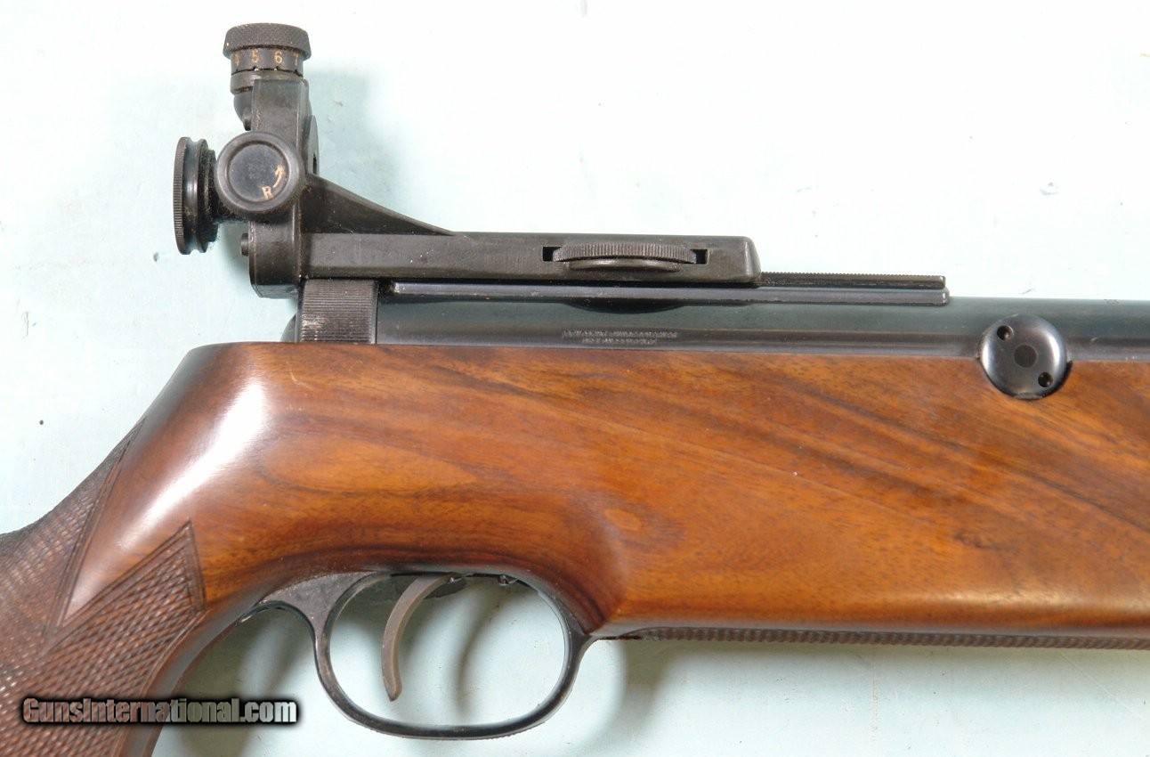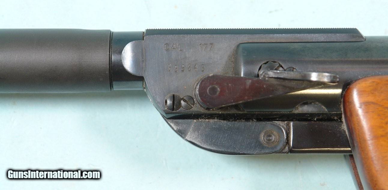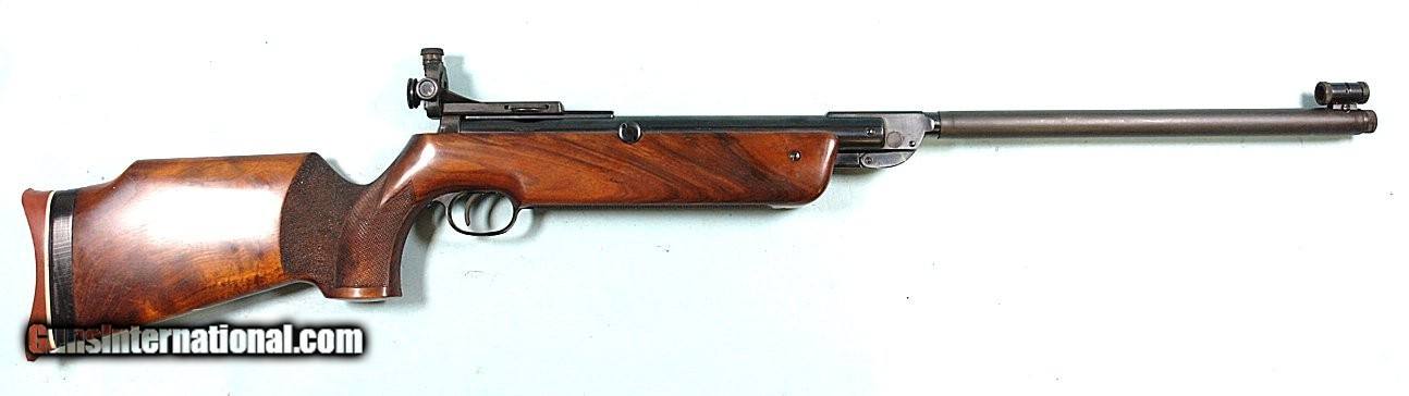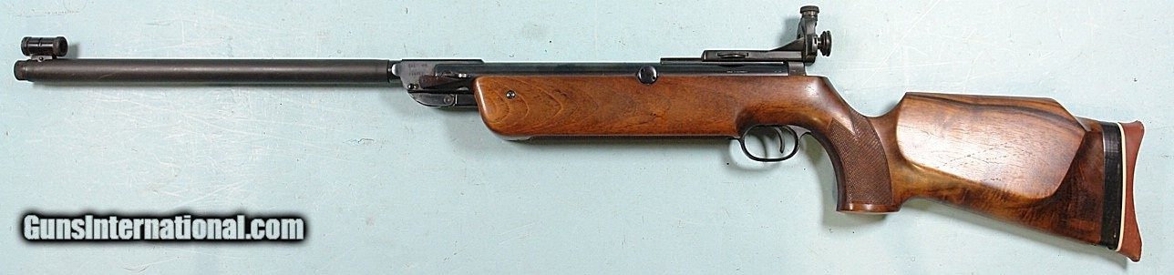 Description: 33043- WINCHESTER MODEL 333 SINGLE SHOT .177 CAL. MATCH AIR RIFLE. Made in Germany. 18” barrel. All original and near mint with all the original blue. Globe front and rail mounted match grade receiver rear sights. Stock in near mint condition as well. Factory adjustable rubber pad. Perfect working order and mint bore. $500. Rifle Caliber: .177 (Air Rifle) Price: $500.00 Contact Seller |
