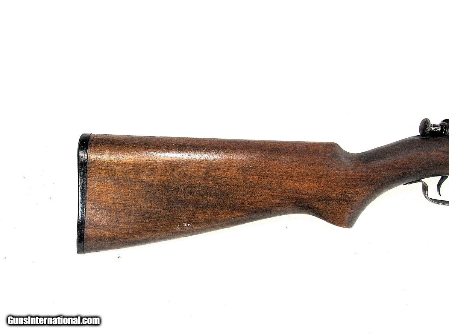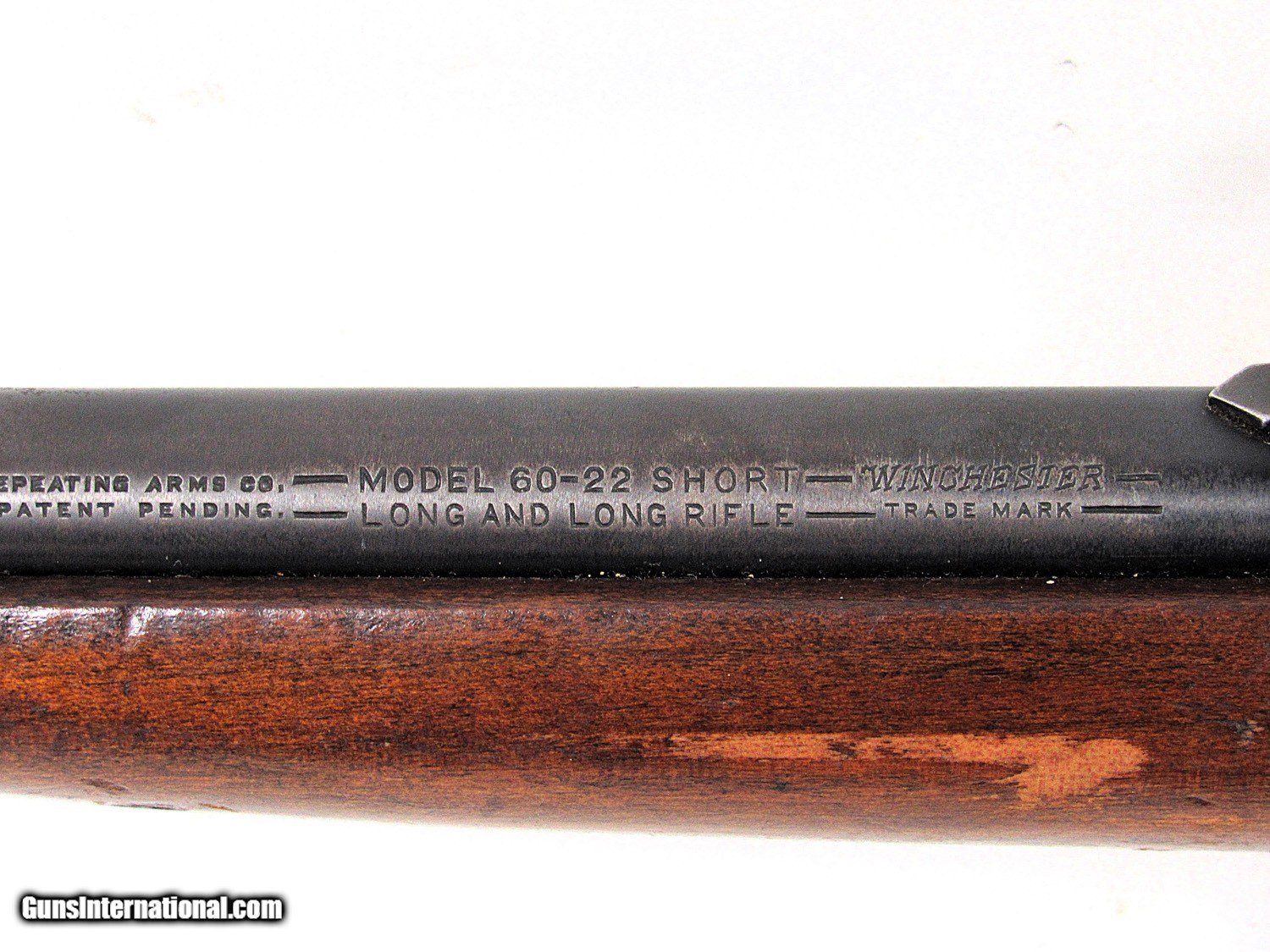 Description: WINCHESTER MODEL 60 22LR. 50% BLUE WITH SOME SCATTERED PITTING. WOOD HAS SOME MARKS AND DINGS. EXCELLENT BORE. SOLD Curio/Relic: Yes Rifle Caliber: .22 Long Rifle |