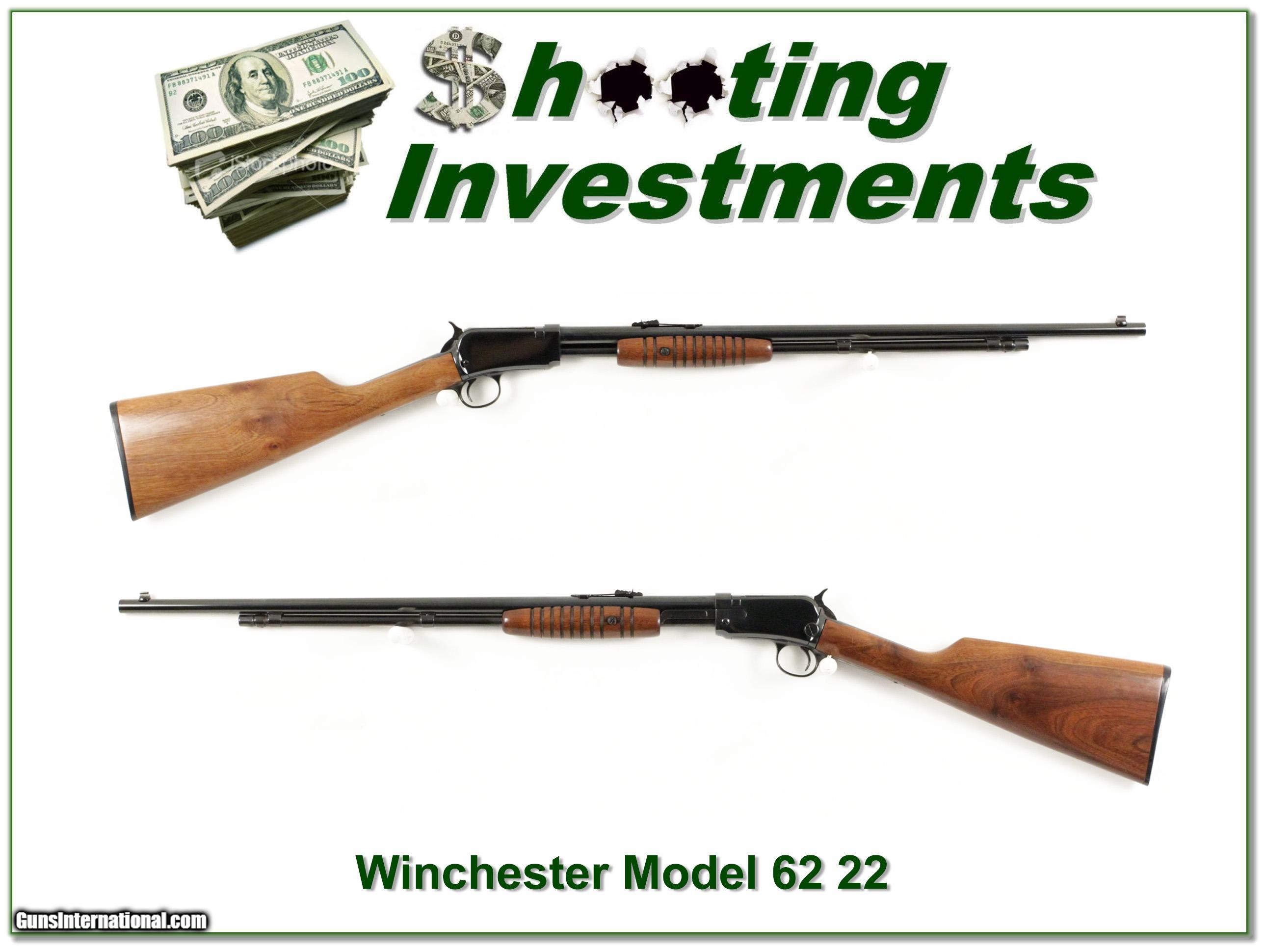 Description: This is a 1932 made Winchester Model 62. It is a first year 4-digit serial number. It was restored at some point and has beautiful wood. I am selling this one on consignment and as such lay-a-way can’t be used. It does of course have the standard 3-day inspection. Shipping and insurance is $35 or $15 more if you want it shipped in a new Plano hard case. Please email me with any questions or larger pictures. (Consign your quality firearms with Shooting Investments for only 10%! Let me know if you have any you would like to sell!) 17-0834 Payment: Payment is by Money Order, Cashiers Check or Personal Check. I can now also accept MasterCard and Visa with a 3% convenience fee. PayPal can be used for some items but never firearms. Please let us know if you would like to pay via PayPal. Shipping: The shipping charge will be listed in each description. It is $35 for most guns. Some heavy guns or those insured for over $2000 will be higher. Shipments to Alaska and Hawaii are higher because air shipment is required. Most firearms are shipped within 5 days of receipt of payment. We prefer shipping at the beginning of the week to avoid firearms in transit over weekends. We package all shipments carefully and insure them for the full purchase price, rounded up to the next $100. In the unlikely event that damage occurs, it is important that you save all packaging material for the claims process. Optics are shipped Priority Mail and most other non-firearm shipments are shipped First Class. Returns: Our return policy is simple. If for any reason you are not pleased with your purchase, you may return your item for a refund. The only exception is ammunition, it cannot be returned. It is important to us that you are happy. Guns cannot be fired or dissembled before returning them and must be returned in the same condition as received. Notification of a return must occur with-in 3 days of receipt at your dealer. Shipping, convenience and dealer fees are not refundable and are the responsibility of the buyer. Lay-a-way: If needed, we offer a 60 day lay-a-way option on most firearms. It is 1/3 now, 1/3 in 30 days and 1/3 in 60 days. Lay-a-way firearm sales are final. Consigning your firearms with Shooting Investments: We will help you get top dollar for your firearms. While most local guns shops charge 20% or more, our fee is only 10% with a minimum of $50. At your local gun shop it might take months to sell. Selling on-line provides instant access to thousands of interested buyers. You won’t find any other on-line dealer willing to sell your firearms for only 10% or listing every gun on 4 separate s. Selling through an House typically costs the seller 15% and the buyer an addition 15% (so 30%) and you have to wait several months to sell and longer to receive funds. If properly priced, we will sell your firearms in a week or two. Send us an email or give us a call and we’ll explain how easy it is for you to get top dollar. Trading: We collect guns and usually just trade for guns we want to add to our collections. We often sell guns for others wanting to purchase one of ours. We find this the most fair to both of us. Our Commission is only 10% and we hold the gun you want until yours sells. Please contact us if you want to sell one of yours to buy one of ours. Help for California Buyers: We are happy to ship to California. It is the buyer’s responsibility to make sure any item you buy is legal in your state. We are also happy to help with your purchase of a firearm from someone other than us. If you see a gun you would like to buy but the seller can’t or won’t ship to California we can help. You buy the gun and have it shipped to us. We’ll then ship it to your California dealer. The cost for this service is only $30 + shipping. Let me know if we can help! SOLD |