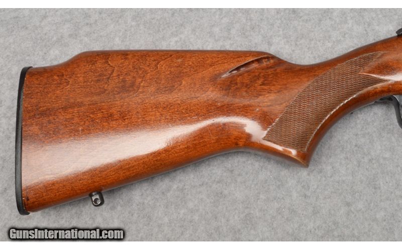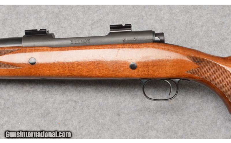 Description: This is a nice older Winchester Model 670 in .243 Winchester. The Model 670 was produced from 1966 to 1979 as a more 'affordable' model of the popular model 70. The blued receiver and barrel are in very good condition. The blued 22' barrel has sharp crisp rifling. The factory trigger is light and smooth. The figured walnut stock is very good with one small chip at the butt stock plates lower end. A nice survivor of the Winchester line of quality rifles. No box or other accessories. .243 Winchester SOLD Metal Condition: Very Good Wood Condition: Good Bore Condition: Excellent Barrels: Blued 22 Triggers: Factory Stock Dimensions: 12" LOP Fore End: Matching Checkered Walnut Butt Pad: Black Textured Plastic Weight: 7 Lb. 5 Oz. Sights: Open with Scope Mounting Blocks Item Location: West Chester, OH |
