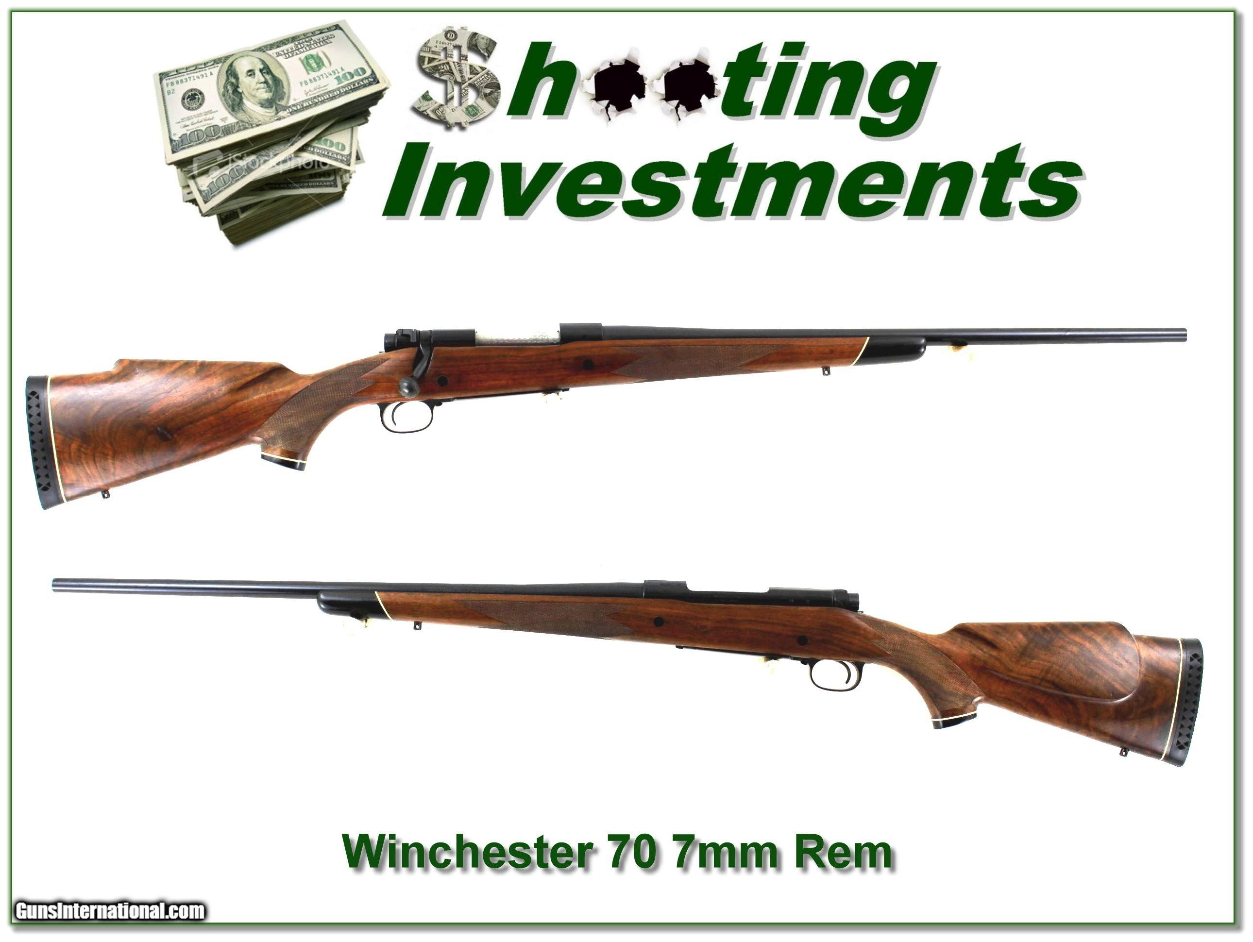 Description: Collectors, hunters and shooters, this is a 1966 made Winchester Model 70 in 7mm Remington Magnum. It has the nicest wood I’ve ever seen on a Model 70. The metal is excellent with no marks I see and a 24in barrel. I see only a few storage marks on the walnut! You may never see another one wit wood this nice. It has a 13.5in LOP over factory recoil pad. It is a Shooting Investment! Shipping and insurance is $49. Please email me with any questions or larger pictures. (Consign your quality firearms with Shooting Investments for only 12%! Let me know if you have any you would like to sell!) 24-0741 Payment: Payment is by Money Order, Cashier’s Check or Personal Check. I can now also accept Credit Cards (MasterCard, Visa, Discover & American Express) with a 3% convenience fee. Shipping: The shipping charge will be listed in each description. It is $49 for most firearms. Some heavy guns or those insured for over $2000 will be higher. Shipments to Alaska and Hawaii are higher because air shipment is required. Most firearms are shipped on Tuesday and Thursday and usually in 5 days of receipt of payment. We package all shipments carefully and insure them. Optics are shipped Priority Mail and most other non-firearm shipments are shipped First Class. Returns: Our return policy is simple. If for any reason you are not pleased with your purchase, you may return your item for a full refund of purchase price. Ammunition cannot be returned. It is important to us that you are happy. Guns cannot be fired or dissembled before returning them and they must be returned in the same condition as received. Notification of a return must occur within 3 days of receipt at your dealer. Shipping, convenience and dealer fees are not refundable and are the responsibility of the buyer. Lay-a-way: If needed, we offer a 60 day lay-a-way option on most firearms. It is 1/3 now, 1/3 in 30 days and 1/3 in 60 days. Lay-a-way firearm sales are final and cannot be returned. If a lay-a-way is not completed the first payment cannot be refunded. Consigning your firearms with Shooting Investments: We will help you get top dollar for your firearms. While most local guns shops charge 20% or more, our fee is only 12% with a minimum of $75. At your local gun shop it might take months to sell. Selling on-line provides instant access to thousands of interested buyers. You won’t find any other on-line dealer willing to sell your firearms for only 12% or listing every gun on 3 separate s. Selling through an House typically costs the seller 15% and the buyer an addition 15% (so 30%) and you have to wait several months to sell and longer to receive funds. If properly priced, we will sell your firearms within a few weeks. Send us an email or give us a call and we’ll explain how easy it is for you to get top dollar. Trading: Trading for us is really just buying your gun to re-sell. If you have a gun you want to trade, please email a picture and we will let you know what we can give for it. You will always get more if we sell it for you on consignment. SOLD |