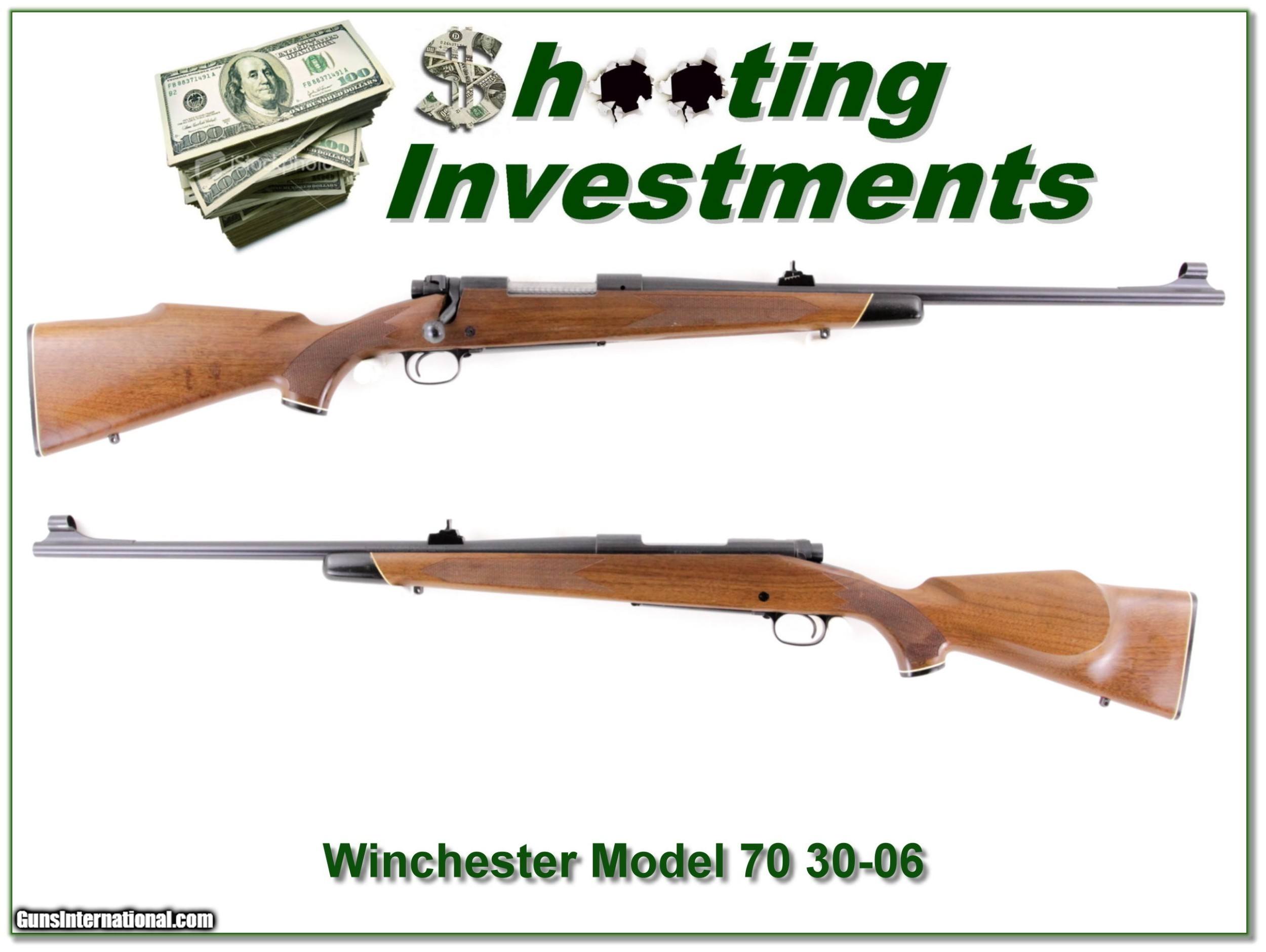 Description: This Winchester Model 70 was made in New Haven Ct in 1975. The blue is excellent and from the bolt jeweling it is clear only a few rounds ever fired. It is a 30-06 with 22in barrel and open sights. The wood has a few marks I expect more from storage than field use. Shipping and insurance is $39. Please email me with any questions or larger pictures. (Consign your quality firearms with Shooting Investments for only 12%! Let me know if you have any you would like to sell!) 19-0298 Payment: Payment is by Money Order, Cashiers Check or Personal Check. I can now also accept MasterCard and Visa with a 3% convenience fee. PayPal can be used for some items but never firearms. Please let us know if you would like to pay via PayPal. Shipping: The shipping charge will be listed in each description. It is $39 for most long guns and $29 for most handguns. Some heavy guns or those insured for over $2000 will be higher. Shipments to Alaska and Hawaii are higher because air shipment is required. Most firearms are shipped on Tuesday and Thursday and usually in 5 days of receipt of payment. We package all shipments carefully and insure them. For long guns you can purchase a new Plano case for $19. They now cost us $22 when buying 100 at a time. Optics are shipped Priority Mail and most other non-firearm shipments are shipped First Class. Returns: Our return policy is simple. If for any reason you are not pleased with your purchase, you may return your item for a full refund of purchase price. Ammunition cannot be returned. It is important to us that you are happy. Guns cannot be fired or dissembled before returning them and they must be returned in the same condition as received. Notification of a return must occur with-in 3 days of receipt at your dealer. Shipping, convenience and dealer fees are not refundable and are the responsibility of the buyer. Lay-a-way: If needed, we offer a 60 day lay-a-way option on most firearms. It is 1/3 now, 1/3 in 30 days and 1/3 in 60 days. Lay-a-way firearm sales are final and if not completed the first payment cannot be returned. Consigning your firearms with Shooting Investments: We will help you get top dollar for your firearms. While most local guns shops charge 20% or more, our fee is only 12% with a minimum of $75. At your local gun shop it might take months to sell. Selling on-line provides instant access to thousands of interested buyers. You won’t find any other on-line dealer willing to sell your firearms for only 12% or listing every gun on 3 separate s. Selling through an House typically costs the seller 15% and the buyer an addition 15% (so 30%) and you have to wait several months to sell and longer to receive funds. If properly priced, we will sell your firearms in a few weeks. Send us an email or give us a call and we’ll explain how easy it is for you to get top dollar. Trading: Trading for use is really just buying your gun to re-sell. If you have a gun you want to trade, please email a picture and we will let you know what we can give or it. You will always get more if we sell it for you on consignment. Help for California Buyers: We are happy to ship to California. It is the buyer’s responsibility to make sure any item you buy is legal in your state. We are also happy to help with your purchase of a firearm from someone other than us. If you see a gun you would like to buy but the seller can’t or won’t ship to California they can ship to use and we’ll then ship it to your California dealer. The cost for this service is only $30 + shipping. Let us know if we can help! SOLD |