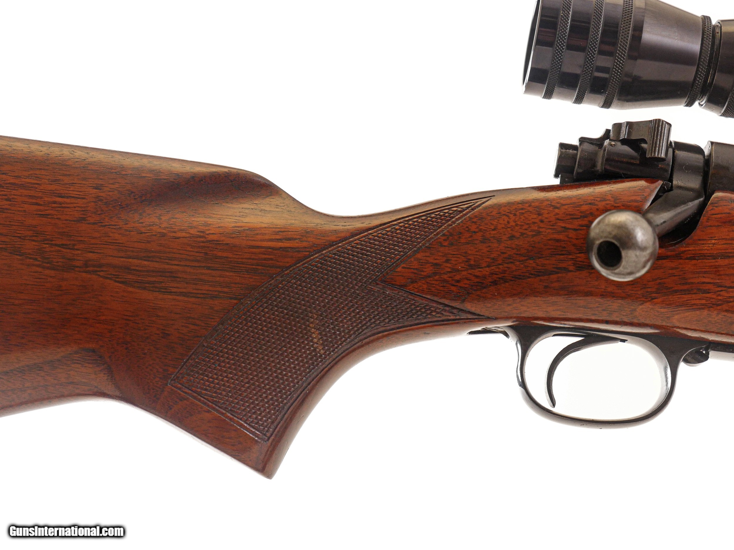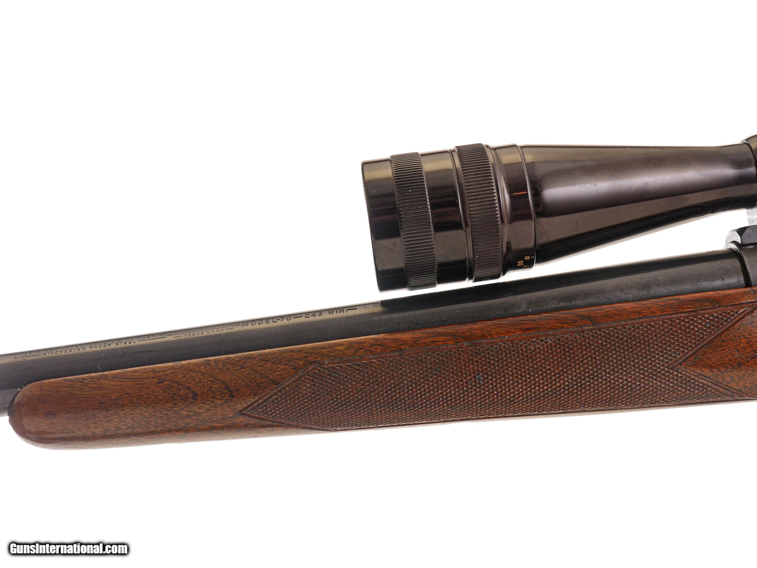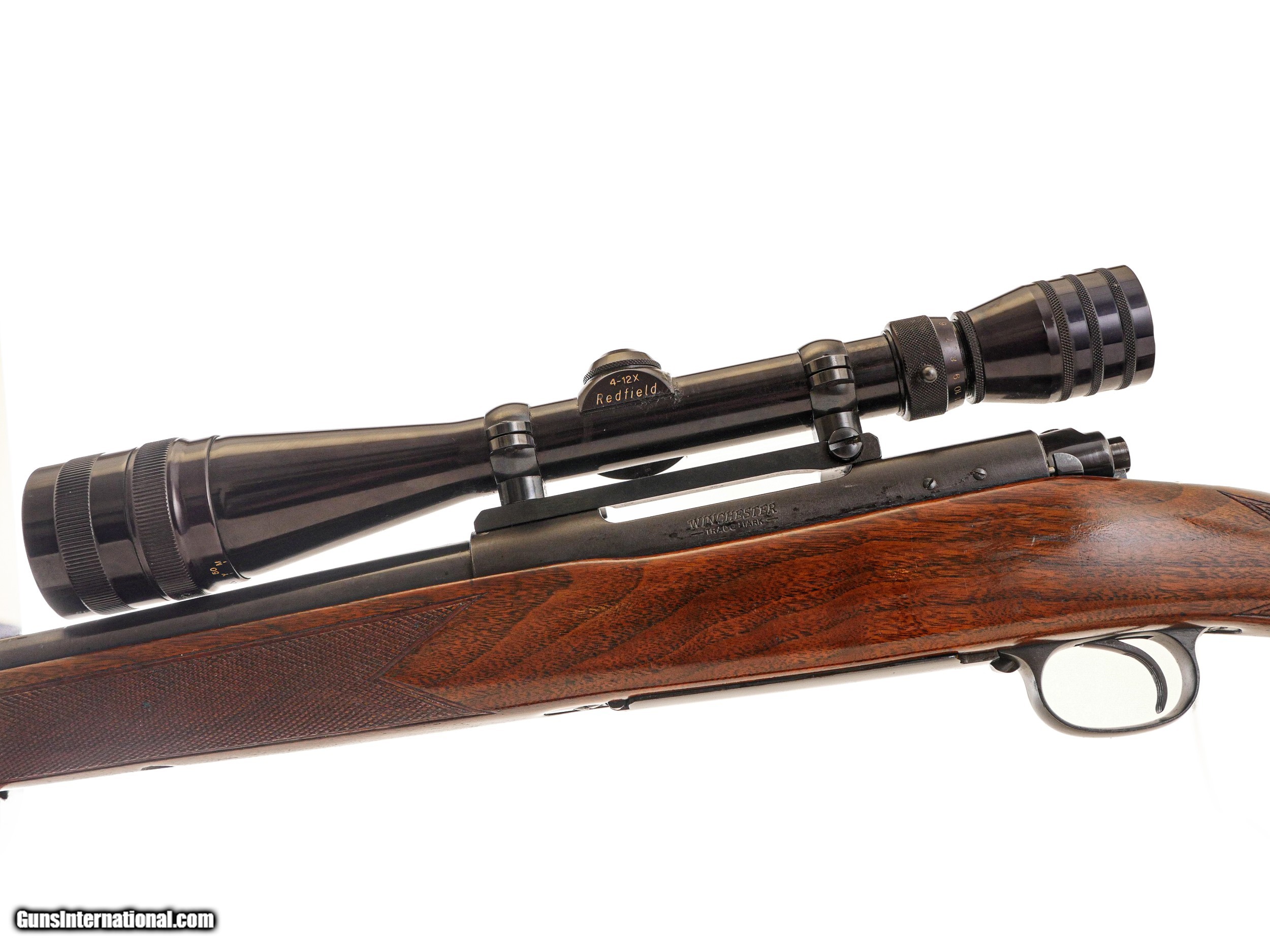 Description: Winchester - Model 70, .243 Win. 26" Target Barrel. Winchester pad, claw extractor 1963 production, includes mounted Redfield 4-12x scope, gun remains in excellent condition. S & H - $50.00 Inv: 50090 11 lbs. 2 oz. 13 ¾” LOP $1,125.00 SOLD |
