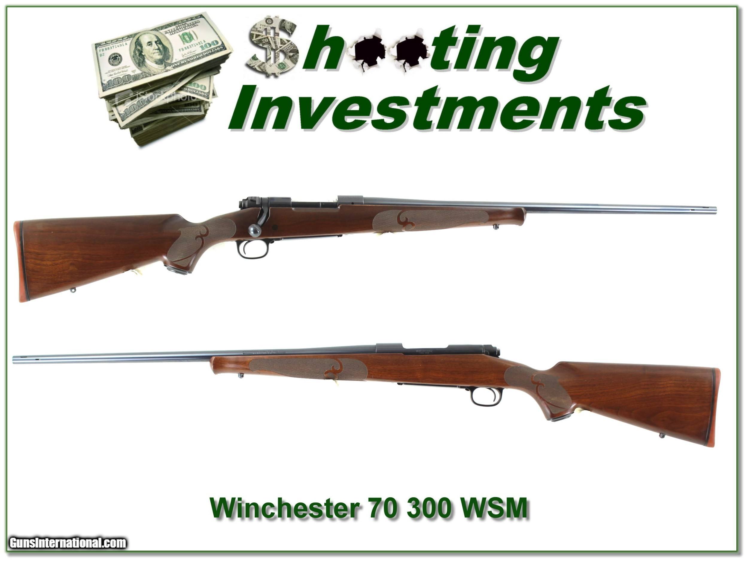 Description: This is an excellent condition Winchester 70 in the hard hitting 300 WSM. This is a New Haven made gun with claw extractor. From the bolt I am sure only a few rounds fired. It has a 24in barrel that was magna ported so recoil will be more like a 270. The wood is excellent with just a couple minor marks. This will make a classic big game gun and they just don’t make them like they used too! It is a Shooting Investment for sure! Shipping and insurance is $39. Please email me with any questions or larger pictures. (Consign your quality firearms with Shooting Investments for only 12%! Let me know if you have any you would like to sell!) 20-1298 Payment: Payment is by Money Order, Cashiers Check or Personal Check. I can now also accept Credit Cards (MasterCard, Visa, Discover & American Express) with a 3% convenience fee. Shipping: The shipping charge will be listed in each description. It is $39 for most firearms. Some heavy guns or those insured for over $2000 will be higher. Shipments to Alaska and Hawaii are higher because air shipment is required. Most firearms are shipped on Tuesday and Thursday and usually in 5 days of receipt of payment. We package all shipments carefully and insure them. Optics are shipped Priority Mail and most other non-firearm shipments are shipped First Class. Returns: Our return policy is simple. If for any reason you are not pleased with your purchase, you may return your item for a full refund of purchase price. Ammunition cannot be returned. It is important to us that you are happy. Guns cannot be fired or dissembled before returning them and they must be returned in the same condition as received. Notification of a return must occur with-in 3 days of receipt at your dealer. Shipping, convenience and dealer fees are not refundable and are the responsibility of the buyer. Lay-a-way: If needed, we offer a 60 day lay-a-way option on most firearms. It is 1/3 now, 1/3 in 30 days and 1/3 in 60 days. Lay-a-way firearm sales are final and if not completed the first payment cannot be returned. Consigning your firearms with Shooting Investments: We will help you get top dollar for your firearms. While most local guns shops charge 20% or more, our fee is only 12% with a minimum of $75. At your local gun shop it might take months to sell. Selling on-line provides instant access to thousands of interested buyers. You won’t find any other on-line dealer willing to sell your firearms for only 12% or listing every gun on 3 separate s. Selling through an House typically costs the seller 15% and the buyer an addition 15% (so 30%) and you have to wait several months to sell and longer to receive funds. If properly priced, we will sell your firearms in a few weeks. Send us an email or give us a call and we’ll explain how easy it is for you to get top dollar. Trading: Trading for use is really just buying your gun to re-sell. If you have a gun you want to trade, please email a picture and we will let you know what we can give or it. You will always get more if we sell it for you on consignment. Help for California Buyers: We are happy to ship to California. It is the buyer’s responsibility to make sure any item you buy is legal in your state. We are also happy to help with your purchase of a firearm from someone other than us. If you see a gun you would like to buy but the seller can’t or won’t ship to California they can ship to use and we’ll then ship it to your California dealer. The cost for this service is only $30 + shipping. Let us know if we can help! SOLD |