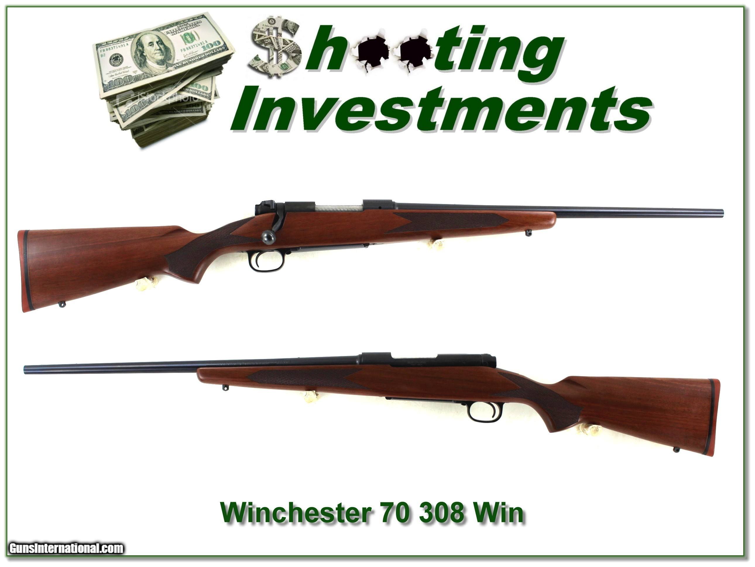 Description: This is a VERY hard to find Winchester 70 Carbine Short Action in 308 Winchester. It is a New Haven made Winchester. These have 20in barrels a light-weight stock. This one looks new with no marks I see. I’m sure only a few rounds fired. It will make a fine lightweight hunting gun! I am selling this one on consignment and as such lay-a-way can’t be used. It does of course have the standard 3-day inspection. Shipping and insurance is $49. Please email me with any questions or larger pictures. (Consign your quality firearms with Shooting Investments for only 12%! Let me know if you have any you would like to sell!) 24-0466 Payment: Payment is by Money Order, Cashier’s Check or Personal Check. I can now also accept Credit Cards (MasterCard, Visa, Discover & American Express) with a 3% convenience fee. Shipping: The shipping charge will be listed in each description. It is $49 for most firearms. Some heavy guns or those insured for over $2000 will be higher. Shipments to Alaska and Hawaii are higher because air shipment is required. Most firearms are shipped on Tuesday and Thursday and usually in 5 days of receipt of payment. We package all shipments carefully and insure them. Optics are shipped Priority Mail and most other non-firearm shipments are shipped First Class. Returns: Our return policy is simple. If for any reason you are not pleased with your purchase, you may return your item for a full refund of purchase price. Ammunition cannot be returned. It is important to us that you are happy. Guns cannot be fired or dissembled before returning them and they must be returned in the same condition as received. Notification of a return must occur within 3 days of receipt at your dealer. Shipping, convenience and dealer fees are not refundable and are the responsibility of the buyer. Lay-a-way: If needed, we offer a 60 day lay-a-way option on most firearms. It is 1/3 now, 1/3 in 30 days and 1/3 in 60 days. Lay-a-way firearm sales are final and cannot be returned. If a lay-a-way is not completed the first payment cannot be refunded. Consigning your firearms with Shooting Investments: We will help you get top dollar for your firearms. While most local guns shops charge 20% or more, our fee is only 12% with a minimum of $75. At your local gun shop it might take months to sell. Selling on-line provides instant access to thousands of interested buyers. You won’t find any other on-line dealer willing to sell your firearms for only 12% or listing every gun on 3 separate s. Selling through an House typically costs the seller 15% and the buyer an addition 15% (so 30%) and you have to wait several months to sell and longer to receive funds. If properly priced, we will sell your firearms within a few weeks. Send us an email or give us a call and we’ll explain how easy it is for you to get top dollar. Trading: Trading for us is really just buying your gun to re-sell. If you have a gun you want to trade, please email a picture and we will let you know what we can give for it. You will always get more if we sell it for you on consignment. SOLD |