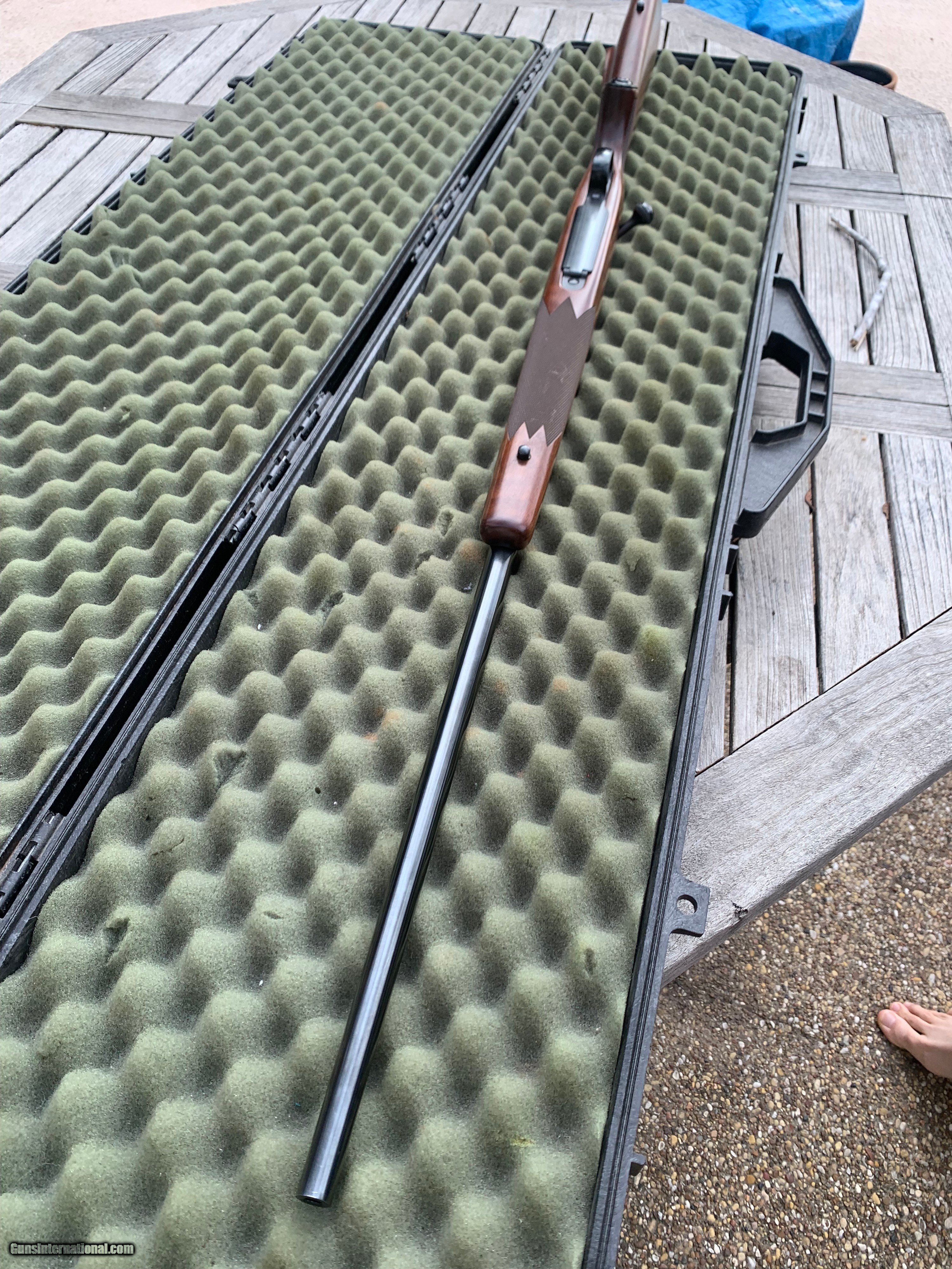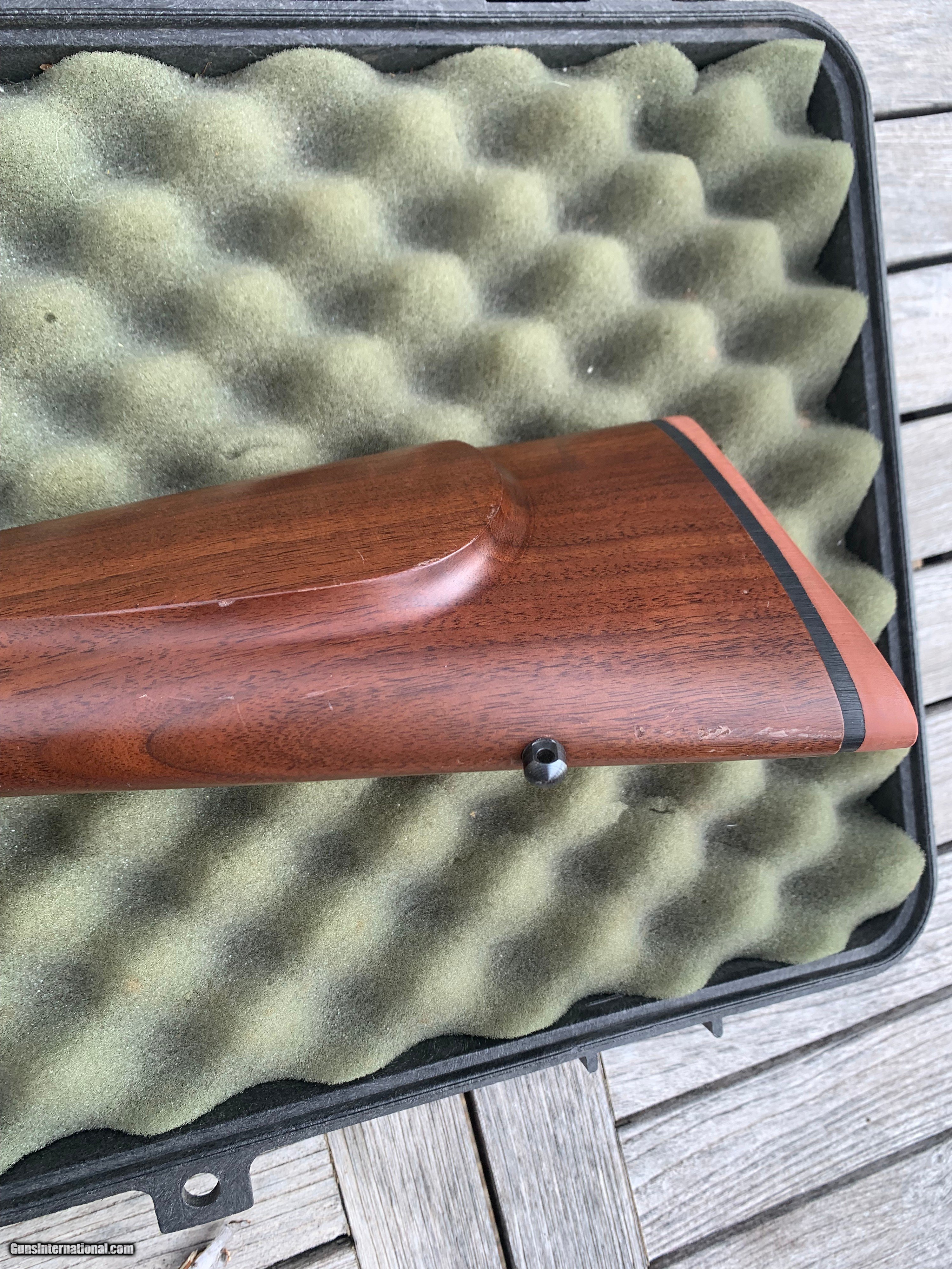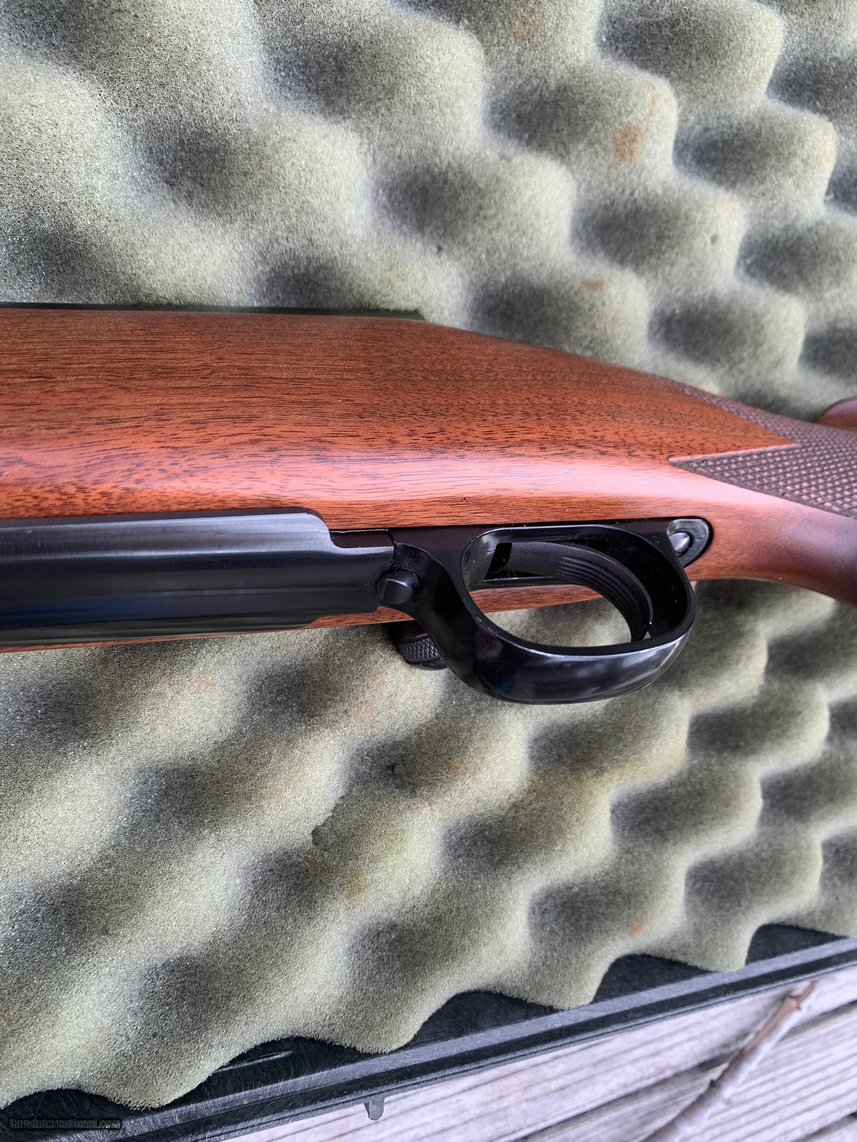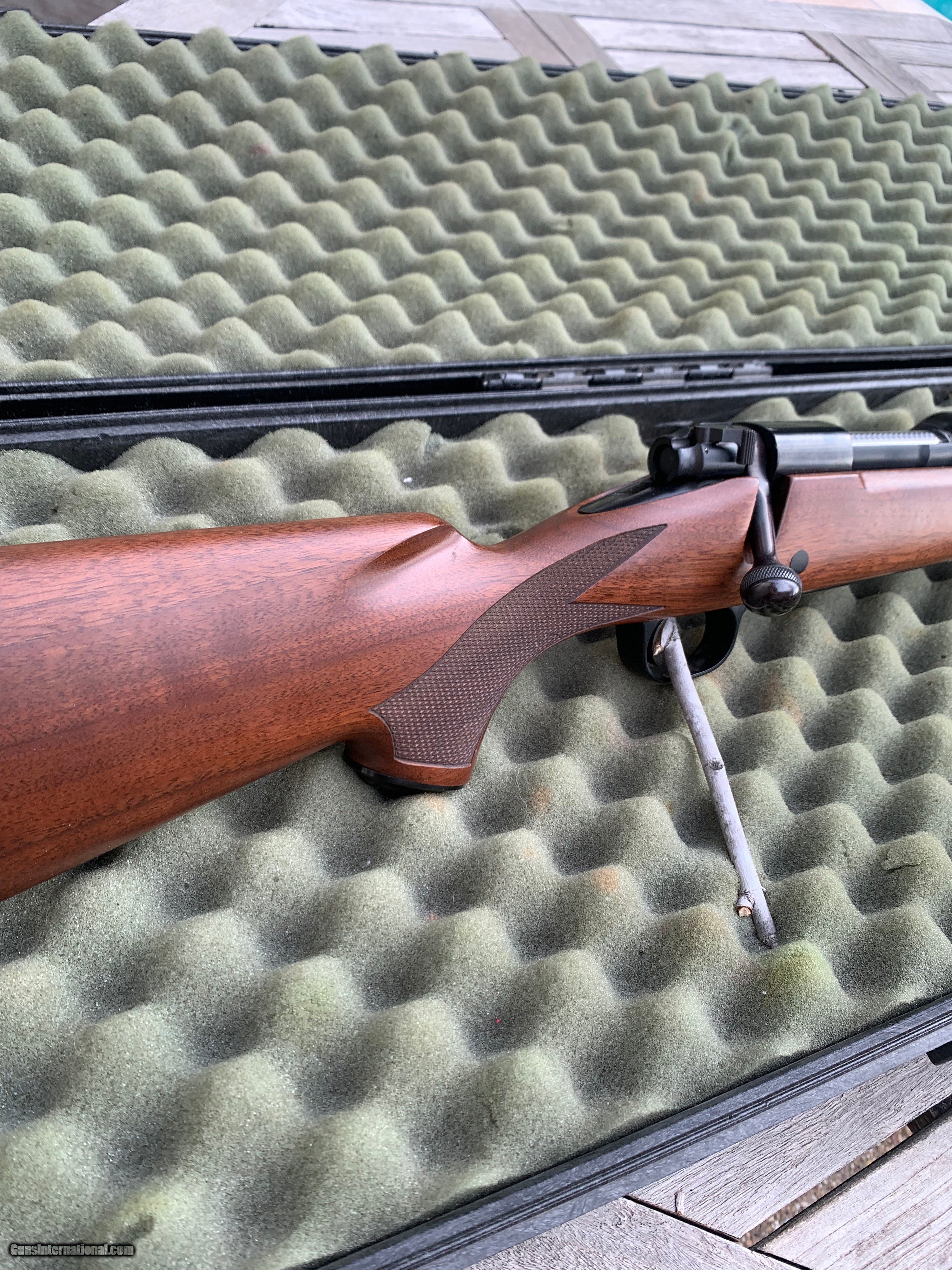Description: Make: Winchester Model: 70 Classic Super Express Serial Number: G52970 Year of Manufacture: 1994 Caliber: .270 Weatherby Magnum Action Type: Bolt Action Rifle with Internal Hinged Floorplate Magazine Barrel Length: 26" Sights/Optics: The top of the receiver has two pairs of drilled, tapped, and filled holes for standard length action (3.35 COAL). Stock Configuration and Condition: The stock is one-piece checkered walnut with one through bolt, capped pistol grip, monte carlo comb with cheekpiece, inlet sling swivel mount on the belly (there is another sling mount fixed to the barrel in front of the forend), and a red rubber Winchester buttpad. There are only a few small marks, most notable a couple of nicks on the bottom of the stock near the butt pad. The checkering is well defined. There are no chips or cracks. The LOP measures 13 1/2" from the front of the trigger to the back of the buttpad. The pad shows minor wear from handling. Overall, the stock is in Fine-Excellent condition. Type of Finish: Blued Finish Originality: Original Bore Condition: The bore is bright with sharp rifling. There is no erosion in the bore. In this seller's opinion, this bore rates 10 out of 10. Overall Condition: This rifle retains about 98% of its metal finish. The crown is crisply blued with no visible wear. The jeweling on the bolt is bright and clean. The raceway shows little to no visible wear. The action shows minor operational wear. Otherwise, there are only light handling marks on the stock. The screw heads are sharp. The markings are clear. Overall, this rifle is in excellent condition. Mechanics: The action functions correctly. I did not fire this rifle. As with all used firearms, a thorough cleaning may be necessary to meet your maintenance standards. Box, Paperwork, and Accessories: None. My Assessment The Winchester Model 70 is an iconic American sporting rifle that has been a staple of hunters for more than 80 years; reliable, robust, and accurate, it is one of the benchmarks by which all bolt action rifles are measured. It has more than earned its nickname of "The Riflemans Rifle", a true icon. This example is a Classic Sporter with a blued finish, 26” barrel, and checkered monte carlo comb stock. It was made in the time Winchester was well out of its fallow period. Efforts were made to set things back to rights when it came to the Model 70 and the classic series saw the return of the lauded control-feed bolt and cut checkering as opposed to pressed. Overall build quality is excellent, and the perceived cheapness of post-64 rifles is nowhere to be found, in fact, quite the opposite is true; this is a premium factory bolt action. Chambered for the powerful .270 Weatherby Magnum, this will make a great hunting rifle for the purchaser. This chambering was a dealer exclusive available only to select high volume dealers throught the USA. The rifle appears to have spent more time in the safe than out, there are only a few marks on the wood. The rifle rates in Excellent condition and looks great, this would also make for a great addition to a Winchester collection. Please see my photos and good luck! Shipping and Handling Will be shipped from a licensed FFL, shipping cost is $100 to the lower 48 states. Local pickup by arrangement only. Payment Will accept cash, check, USPS Money Order etc. No credit cards please. SOLD Rifle Caliber: .270 Weatherby Magnum Manufacturer: Winchester Model: Model 70 Classic Sporter Barrel Length: 26 Condition: Excellent |