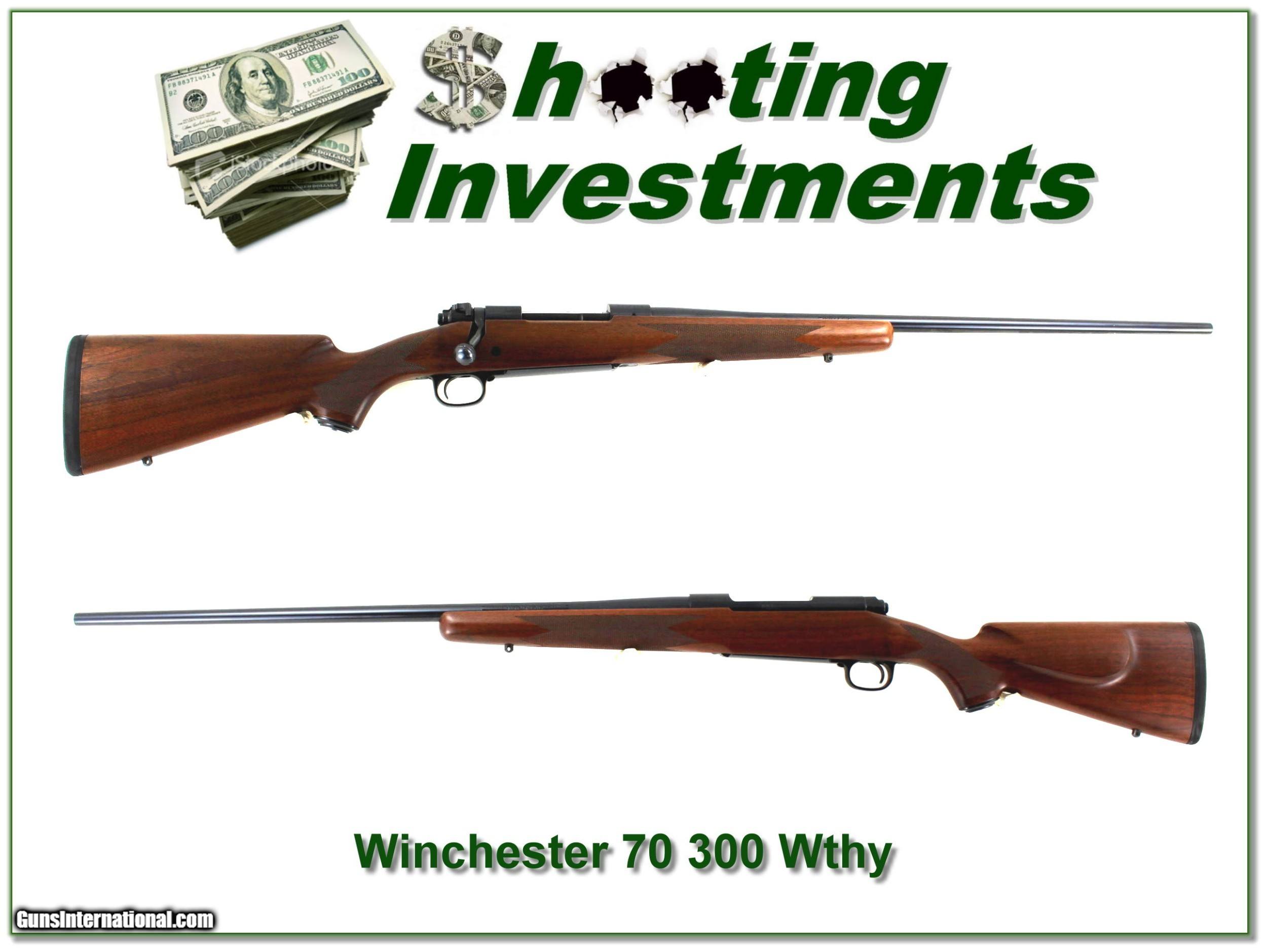 Description: Shooters, hunters and collectors, this is a near new Winchester 70 Classic Sportier in the hard hitting and flat shooting 300 Weatherby Magnum! I find no marks on the metal or the wood and I’m sure only a few rounds fired. It has a 26in barrel and the classic claw extractor. It will make a very nice hunting gun or be a fine addition to your collection! It is a Shooting Investment. I am selling this one on consignment and as such lay-a-way can’t be used. It does of course have the standard 3-day inspection. Shipping and insurance is $49. Please email me with any questions or larger pictures. (Consign your quality firearms with Shooting Investments for only 12%! Let me know if you have any you would like to sell!) 22-0962 Payment: Payment is by Money Order, Cashiers Check or Personal Check. I can now also accept Credit Cards (MasterCard, Visa, Discover & American Express) with a 3% convenience fee. Shipping: The shipping charge will be listed in each description. It is $49 for most long guns. Some heavy guns, over 48in boxes or those insured for over $2000 will be higher. Shipments to Alaska and Hawaii are higher because air shipment is required. Most firearms are shipped on Tuesday and Thursday and usually in 5 days of receipt of payment. We package all shipments carefully and insure them. Optics are shipped Priority Mail and most other non-firearm shipments are shipped First Class. Returns: Our return policy is simple. If for any reason you are not pleased with your purchase, you may return your item for a full refund of purchase price. Ammunition cannot be returned. It is important to us that you are happy. Guns cannot be fired or dissembled before returning them and they must be returned in the same condition as received. Notification of a return must occur with-in 3 days of receipt at your dealer. Shipping, convenience and dealer fees are not refundable and are the responsibility of the buyer. Lay-a-way: If needed, we offer a 60 day lay-a-way option on most firearms. It is 1/3 now, 1/3 in 30 days and 1/3 in 60 days. Lay-a-way firearm sales are final and if not completed the first payment cannot be returned. Consigning your firearms with Shooting Investments: We will help you get top dollar for your firearms. While most local guns shops charge 20% or more, our fee is only 12% with a minimum of $75. At your local gun shop it might take months to sell. Selling on-line provides instant access to thousands of interested buyers. You won’t find any other on-line dealer willing to sell your firearms for only 12% or listing every gun on 3 separate s. Selling through an House typically costs the seller 15% and the buyer an addition 15% (so 30%) and you have to wait several months to sell and longer to receive funds. If properly priced, we will sell your firearms in a few weeks. Send us an email or give us a call and we’ll explain how easy it is for you to get top dollar. Trading: Trading for use is really just buying your gun to re-sell. If you have a gun you want to trade, please email a picture and we will let you know what we can give or it. You will always get more if we sell it for you on consignment. Help for California Buyers: We are happy to ship to California. It is the buyer’s responsibility to make sure any item you buy is legal in your state. We are also happy to help with your purchase of a firearm from someone other than us. If you see a gun you would like to buy but the seller can’t or won’t ship to California they can ship to use and we’ll then ship it to your California dealer. The cost for this service is only $30 + shipping. Let us know if we can help! SOLD |