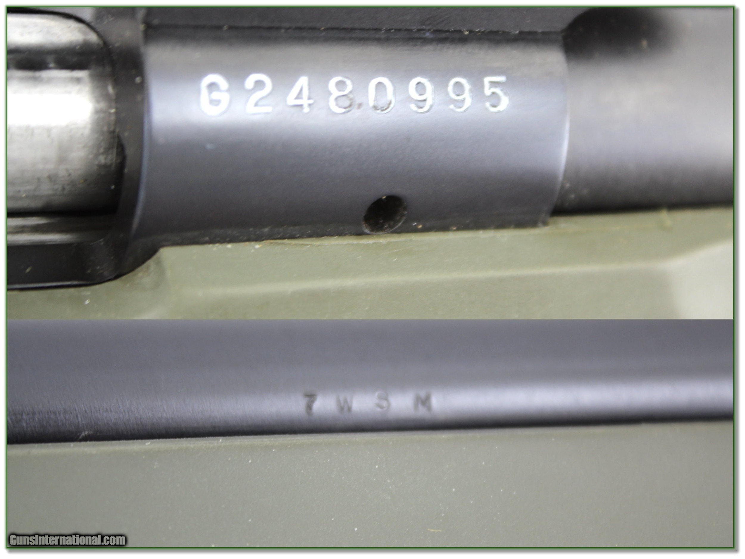 Description: This is an excellent condition customer Winchester Model 70. It has a 24in medium heavy barrel in a very nice Hogue olive green stock. It comes as seen with scope rail. The trigger is nice and crisp. I find no marks of note. It will make an excellent Winchester for the range or field. I am selling this one on consignment and as such lay-a-way can’t be used. It does of course have the standard 3-day inspection. Shipping and insurance is $39. Please email me with any questions or larger pictures. (Consign your quality firearms with Shooting Investments for only 12%! Let me know if you have any you would like to sell!) 21-0203 Payment: Payment is by Money Order, Cashiers Check or Personal Check. I can now also accept Credit Cards (MasterCard, Visa, Discover & American Express) with a 3% convenience fee. Shipping: The shipping charge will be listed in each description. It is $39 for most firearms. Some heavy guns or those insured for over $2000 will be higher. Shipments to Alaska and Hawaii are higher because air shipment is required. Most firearms are shipped on Tuesday and Thursday and usually in 5 days of receipt of payment. We package all shipments carefully and insure them. Optics are shipped Priority Mail and most other non-firearm shipments are shipped First Class. Returns: Our return policy is simple. If for any reason you are not pleased with your purchase, you may return your item for a full refund of purchase price. Ammunition cannot be returned. It is important to us that you are happy. Guns cannot be fired or dissembled before returning them and they must be returned in the same condition as received. Notification of a return must occur with-in 3 days of receipt at your dealer. Shipping, convenience and dealer fees are not refundable and are the responsibility of the buyer. Lay-a-way: If needed, we offer a 60 day lay-a-way option on most firearms. It is 1/3 now, 1/3 in 30 days and 1/3 in 60 days. Lay-a-way firearm sales are final and if not completed the first payment cannot be returned. Consigning your firearms with Shooting Investments: We will help you get top dollar for your firearms. While most local guns shops charge 20% or more, our fee is only 12% with a minimum of $75. At your local gun shop it might take months to sell. Selling on-line provides instant access to thousands of interested buyers. You won’t find any other on-line dealer willing to sell your firearms for only 12% or listing every gun on 3 separate s. Selling through an House typically costs the seller 15% and the buyer an addition 15% (so 30%) and you have to wait several months to sell and longer to receive funds. If properly priced, we will sell your firearms in a few weeks. Send us an email or give us a call and we’ll explain how easy it is for you to get top dollar. Trading: Trading for use is really just buying your gun to re-sell. If you have a gun you want to trade, please email a picture and we will let you know what we can give or it. You will always get more if we sell it for you on consignment. Help for California Buyers: We are happy to ship to California. It is the buyer’s responsibility to make sure any item you buy is legal in your state. We are also happy to help with your purchase of a firearm from someone other than us. If you see a gun you would like to buy but the seller can’t or won’t ship to California they can ship to use and we’ll then ship it to your California dealer. The cost for this service is only $30 + shipping. Let us know if we can help! SOLD |