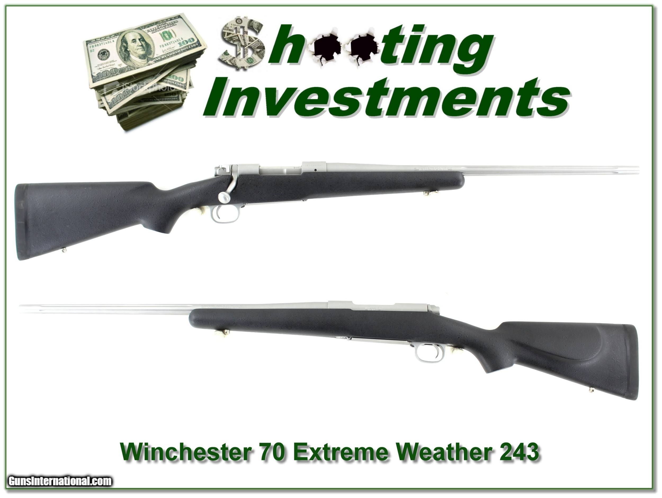 Description: This is an excellent condition Winchester Model 70 Stainless Extreme Weather in the harder to find 243 Winchester. It is the earlier USA made model with Bell & Carson stock. It has a 22in fluted barrel. I find no marks of not eon metal or stock. Shipping and insurance is $39. Please email me with any questions or larger pictures. (Consign your quality firearms with Shooting Investments for only 12%! Let me know if you have any you would like to sell!) 20-1339 Payment: Payment is by Money Order, Cashier’s Check or Personal Check. I can now also accept Credit Cards (MasterCard, Visa, Discover & American Express) with a 3% convenience fee. Shipping: The shipping charge will be listed in each description. It is $39 for most firearms. Some heavy guns or those insured for over $2000 will be higher. Shipments to Alaska and Hawaii are higher because air shipment is required. Most firearms are shipped on Tuesday and Thursday and usually in 5 days of receipt of payment. We package all shipments carefully and insure them. Optics are shipped Priority Mail and most other non-firearm shipments are shipped First Class. Returns: Our return policy is simple. If for any reason you are not pleased with your purchase, you may return your item for a full refund of purchase price. Ammunition cannot be returned. It is important to us that you are happy. Guns cannot be fired or dissembled before returning them and they must be returned in the same condition as received. Notification of a return must occur with-in 3 days of receipt at your dealer. Shipping, convenience and dealer fees are not refundable and are the responsibility of the buyer. Lay-a-way: If needed, we offer a 60 day lay-a-way option on most firearms. It is 1/3 now, 1/3 in 30 days and 1/3 in 60 days. Lay-a-way firearm sales are final and if not completed the first payment cannot be returned. Consigning your firearms with Shooting Investments: We will help you get top dollar for your firearms. While most local guns shops charge 20% or more, our fee is only 12% with a minimum of $75. At your local gun shop it might take months to sell. Selling on-line provides instant access to thousands of interested buyers. You won’t find any other on-line dealer willing to sell your firearms for only 12% or listing every gun on 3 separate s. Selling through an House typically costs the seller 15% and the buyer an addition 15% (so 30%) and you have to wait several months to sell and longer to receive funds. If properly priced, we will sell your firearms in a few weeks. Send us an email or give us a call and we’ll explain how easy it is for you to get top dollar. Trading: Trading for use is really just buying your gun to re-sell. If you have a gun you want to trade, please email a picture and we will let you know what we can give or it. You will always get more if we sell it for you on consignment. Help for California Buyers: We are happy to ship to California. It is the buyer’s responsibility to make sure any item you buy is legal in your state. We are also happy to help with your purchase of a firearm from someone other than us. If you see a gun you would like to buy but the seller can’t or won’t ship to California they can ship to use and we’ll then ship it to your California dealer. The cost for this service is only $30 + shipping. Let us know if we can help! SOLD |