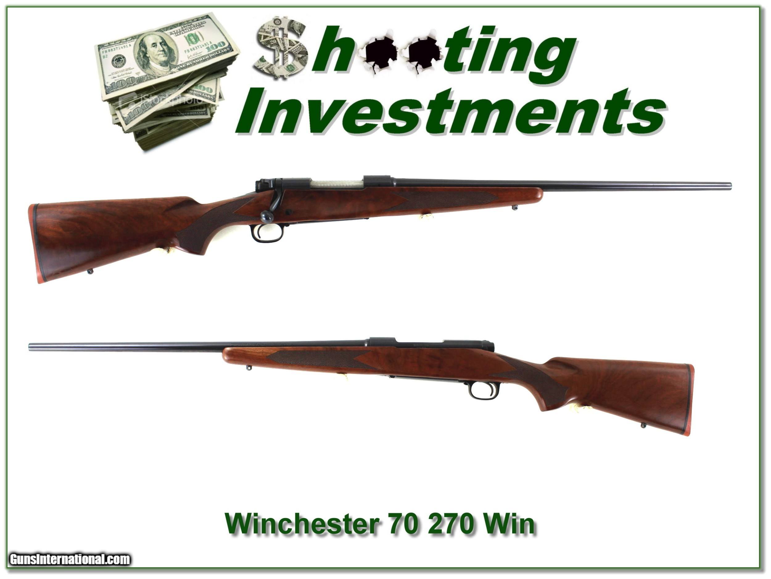 Description: Collectors, hunters and shooters, this is a New Haven made Winchester Model 70 Lightweight in 270 Winchester with Red factory pad. It has a 22in barrel and the claw extractor. It looks near new with no marks I find and I’m sure only a few rounds fired. And look at the wood. It has beautiful colors and grain. Shipping and insurance is $49. Please email me with any questions or larger pictures. (Consign your quality firearms with Shooting Investments for only 12%! Let me know if you have any you would like to sell!) 22-0652 Payment: Payment is by Money Order, Cashiers Check or Personal Check. I can now also accept Credit Cards (MasterCard, Visa, Discover & American Express) with a 3% convenience fee. Shipping: The shipping charge will be listed in each description. It is $49 for most long guns. Some heavy guns, over 48in boxes or those insured for over $2000 will be higher. Shipments to Alaska and Hawaii are higher because air shipment is required. Most firearms are shipped on Tuesday and Thursday and usually in 5 days of receipt of payment. We package all shipments carefully and insure them. Optics are shipped Priority Mail and most other non-firearm shipments are shipped First Class. Returns: Our return policy is simple. If for any reason you are not pleased with your purchase, you may return your item for a full refund of purchase price. Ammunition cannot be returned. It is important to us that you are happy. Guns cannot be fired or dissembled before returning them and they must be returned in the same condition as received. Notification of a return must occur with-in 3 days of receipt at your dealer. Shipping, convenience and dealer fees are not refundable and are the responsibility of the buyer. Lay-a-way: If needed, we offer a 60 day lay-a-way option on most firearms. It is 1/3 now, 1/3 in 30 days and 1/3 in 60 days. Lay-a-way firearm sales are final and if not completed the first payment cannot be returned. Consigning your firearms with Shooting Investments: We will help you get top dollar for your firearms. While most local guns shops charge 20% or more, our fee is only 12% with a minimum of $75. At your local gun shop it might take months to sell. Selling on-line provides instant access to thousands of interested buyers. You won’t find any other on-line dealer willing to sell your firearms for only 12% or listing every gun on 3 separate s. Selling through an House typically costs the seller 15% and the buyer an addition 15% (so 30%) and you have to wait several months to sell and longer to receive funds. If properly priced, we will sell your firearms in a few weeks. Send us an email or give us a call and we’ll explain how easy it is for you to get top dollar. Trading: Trading for use is really just buying your gun to re-sell. If you have a gun you want to trade, please email a picture and we will let you know what we can give or it. You will always get more if we sell it for you on consignment. Help for California Buyers: We are happy to ship to California. It is the buyer’s responsibility to make sure any item you buy is legal in your state. We are also happy to help with your purchase of a firearm from someone other than us. If you see a gun you would like to buy but the seller can’t or won’t ship to California they can ship to use and we’ll then ship it to your California dealer. The cost for this service is only $30 + shipping. Let us know if we can help! SOLD |