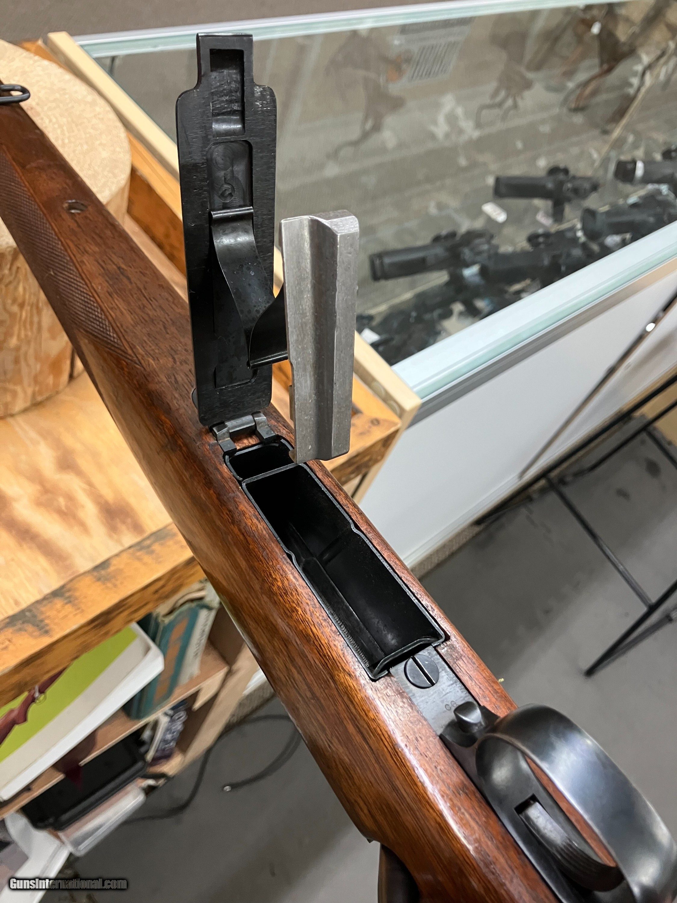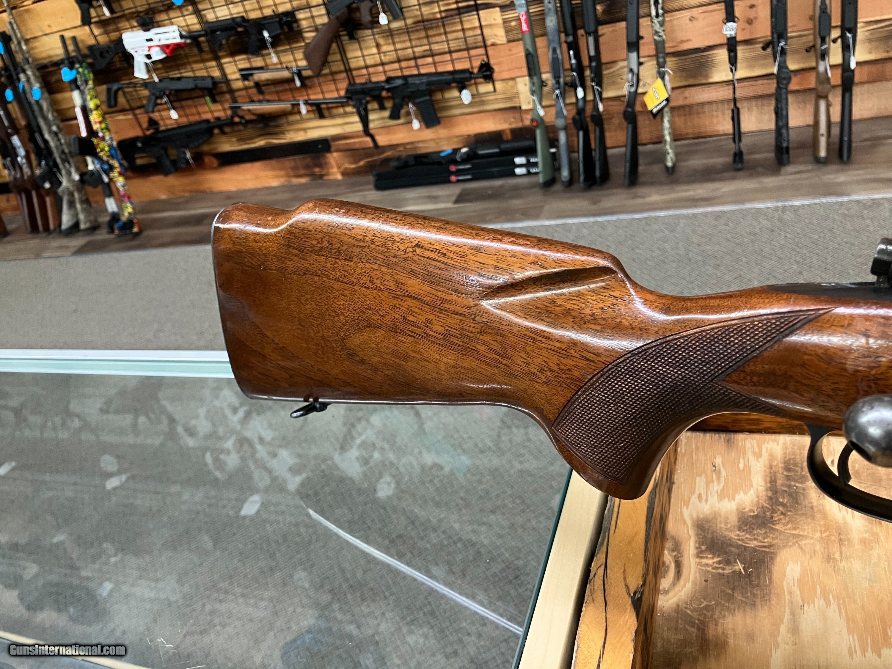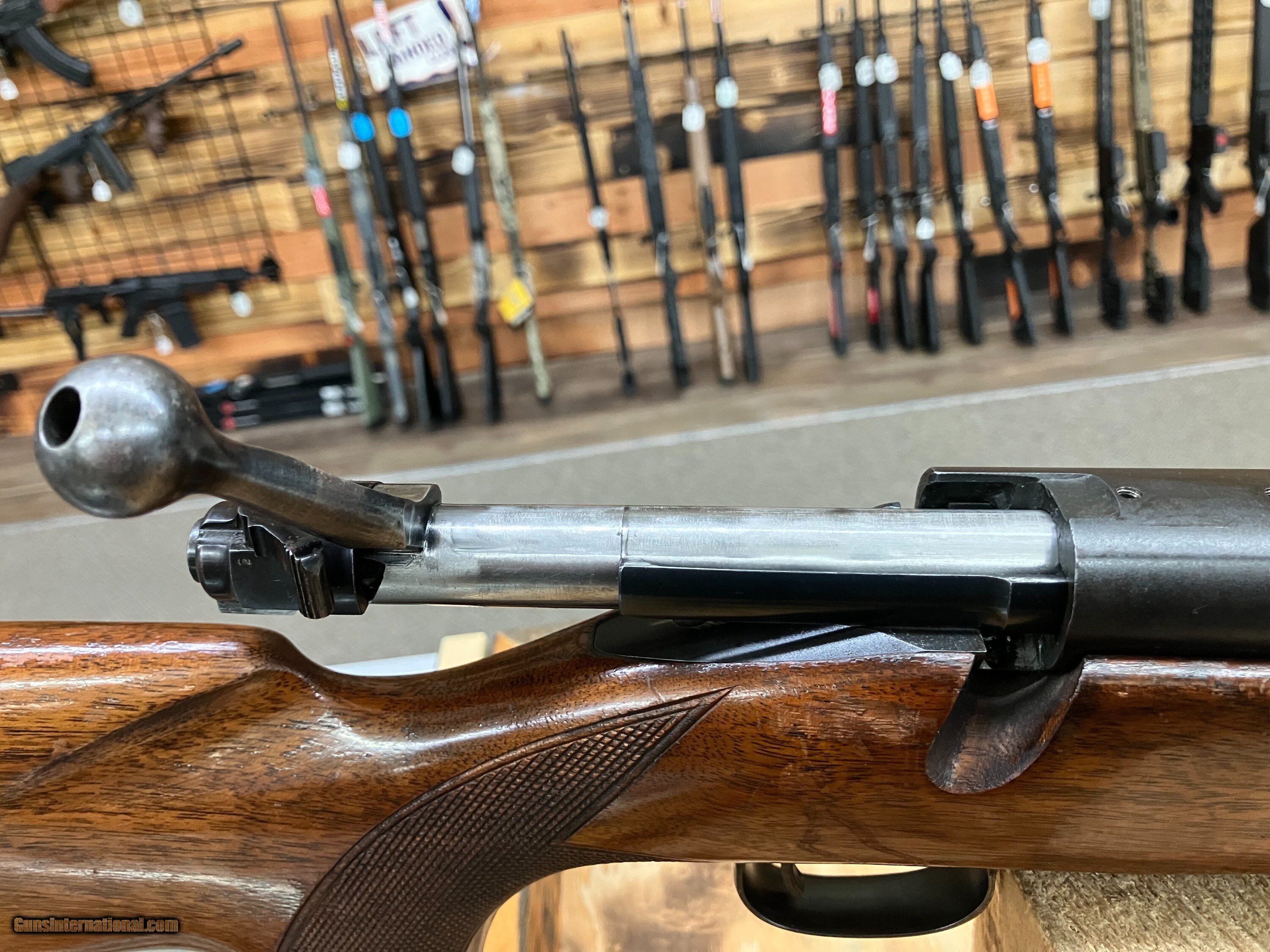 Description: Winchester Pre-64 Model 70 220 Swift - Year of Production: 1954 - Has the classic Mauser-type controlled round feed action - This Rifle is in VERY GOOD Condition - Bore is clean and has sharp rifling The finish on the walnut stock is hand oiled and in very good shape with only a few light scuffs and pressure marks. Pistol grip and forend have fine checkering. Bluing on barrel and receiver over 90% with some light wear near the muzzle and bolt handle. The bore is clean and sharp. Original sling eyelets on the underside of the stock. This rifle is very solid, functions well and is very accurate. Specifications: Rifle Caliber: .220 Swift Manufacturer: Winchester Model: Model 70 (Pre-64) Serial Number: 309144 Barrel Length: 26” Condition: VERY GOOD Action: Mauser Controlled Feed Bolt Action Stock: Hand Oiled Walnut Twist: 1:14” Safety: 3 Position Capacity: 4+1 Butt Plate: Factory Winchester LOP: 13-1/2” Finish: Oiled Walnut/Blued Weight: 8 LBS. 7 OZ. Overall Length: 46.5” Manufacture Date: 1954 Rifle Caliber: .220 Swift Manufacturer: Winchester Model: Model 70 (Pre-64) Serial Number: 309144 Barrel Length: 26 Condition: Very Good Price: $2,700.00 Contact Seller |