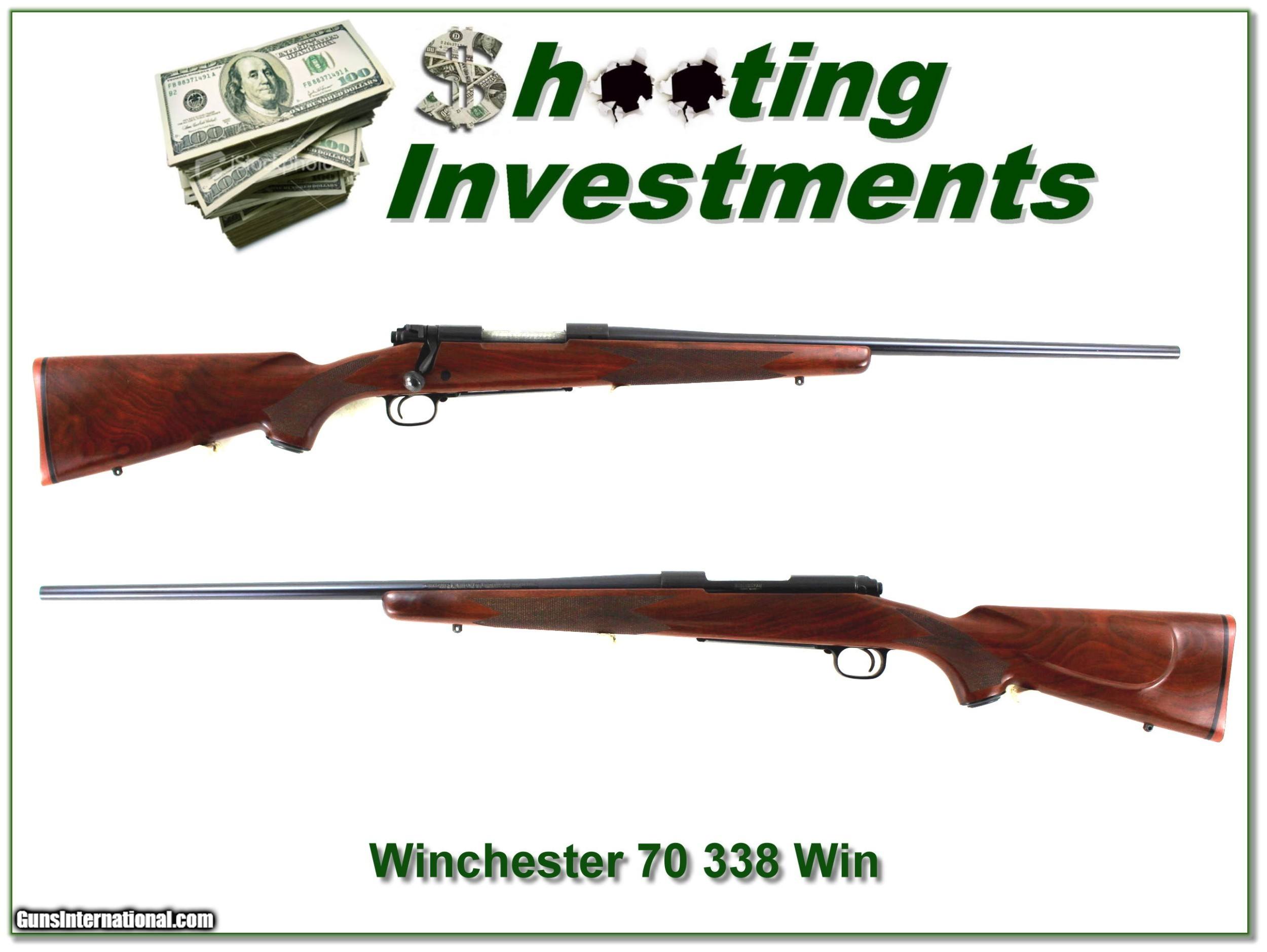 Description: This is a beautiful New Haven made Winchester 70 XTR Sportier in the hard hitting 338 Winchester Magnum. It has a 24in barrel and the walnut has beautiful grain and the older Red Pad. I find only a few minor marks. It will make a classic hunt gung gun and they just don’t make them like they used too! Shipping and insurance is $49. Please email me with any questions or larger pictures. (Consign your quality firearms with Shooting Investments for only 12%! Let me know if you have any you would like to sell!) 22-1030 Payment: Payment is by Money Order, Cashiers Check or Personal Check. I can now also accept Credit Cards (MasterCard, Visa, Discover & American Express) with a 3% convenience fee. Shipping: The shipping charge will be listed in each description. It is $49 for most long guns. Some heavy guns, over 48in boxes or those insured for over $2000 will be higher. Shipments to Alaska and Hawaii are higher because air shipment is required. Most firearms are shipped on Tuesday and Thursday and usually in 5 days of receipt of payment. We package all shipments carefully and insure them. Optics are shipped Priority Mail and most other non-firearm shipments are shipped First Class. Returns: Our return policy is simple. If for any reason you are not pleased with your purchase, you may return your item for a full refund of purchase price. Ammunition cannot be returned. It is important to us that you are happy. Guns cannot be fired or dissembled before returning them and they must be returned in the same condition as received. Notification of a return must occur with-in 3 days of receipt at your dealer. Shipping, convenience and dealer fees are not refundable and are the responsibility of the buyer. Lay-a-way: If needed, we offer a 60 day lay-a-way option on most firearms. It is 1/3 now, 1/3 in 30 days and 1/3 in 60 days. Lay-a-way firearm sales are final and if not completed the first payment cannot be returned. Consigning your firearms with Shooting Investments: We will help you get top dollar for your firearms. While most local guns shops charge 20% or more, our fee is only 12% with a minimum of $75. At your local gun shop it might take months to sell. Selling on-line provides instant access to thousands of interested buyers. You won’t find any other on-line dealer willing to sell your firearms for only 12% or listing every gun on 3 separate s. Selling through an House typically costs the seller 15% and the buyer an addition 15% (so 30%) and you have to wait several months to sell and longer to receive funds. If properly priced, we will sell your firearms in a few weeks. Send us an email or give us a call and we’ll explain how easy it is for you to get top dollar. Trading: Trading for use is really just buying your gun to re-sell. If you have a gun you want to trade, please email a picture and we will let you know what we can give or it. You will always get more if we sell it for you on consignment. Help for California Buyers: We are happy to ship to California. It is the buyer’s responsibility to make sure any item you buy is legal in your state. We are also happy to help with your purchase of a firearm from someone other than us. If you see a gun you would like to buy but the seller can’t or won’t ship to California they can ship to use and we’ll then ship it to your California dealer. The cost for this service is only $30 + shipping. Let us know if we can help! SOLD |