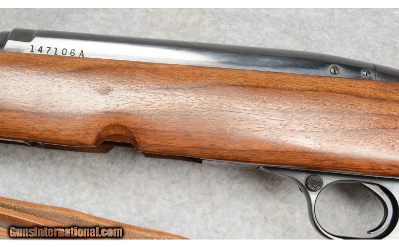 Description: SOLD Caliber Info: .284 Win. Metal Condition: Very good with minor scratches. Wood Condition: Good with handling marks. Bore Condition: Shiny with strong rifling. Barrels: 22 Stock: Checkered walnut. Fore End: Checkered walnut. Butt Pad: Textured black plastic. Weight: 7-lbs., 3-ozs. Sights: Hooded front bead, adjustable rear blade. Item Location: Scarborough, ME |