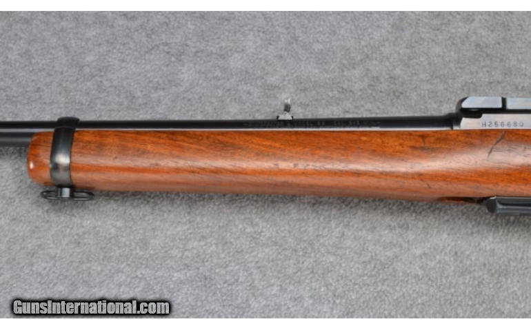 Description: Blue shows slight edgewear at the muzzle to the lever and triggerguard. Bore is excellent. Wood shows hunting marks and remains free of cracks. Complete with Scope base. SOLD Manufacturer: S/N H256XXX Caliber Info: .243 Win. Metal Condition: Very Good Wood Condition: Good Bore Condition: Excellent Barrels: 18 1/2 Triggers: Factory Stock: Uncheckered Walnut Stock Dimensions: 13 3/4" LOP Fore End: Uncheckered Walnut Butt Pad: Black Plastic Weight: 7 1/4 LB Sights: Bead Front - Folding Notch Rear Item Location: Wheeling, WV |