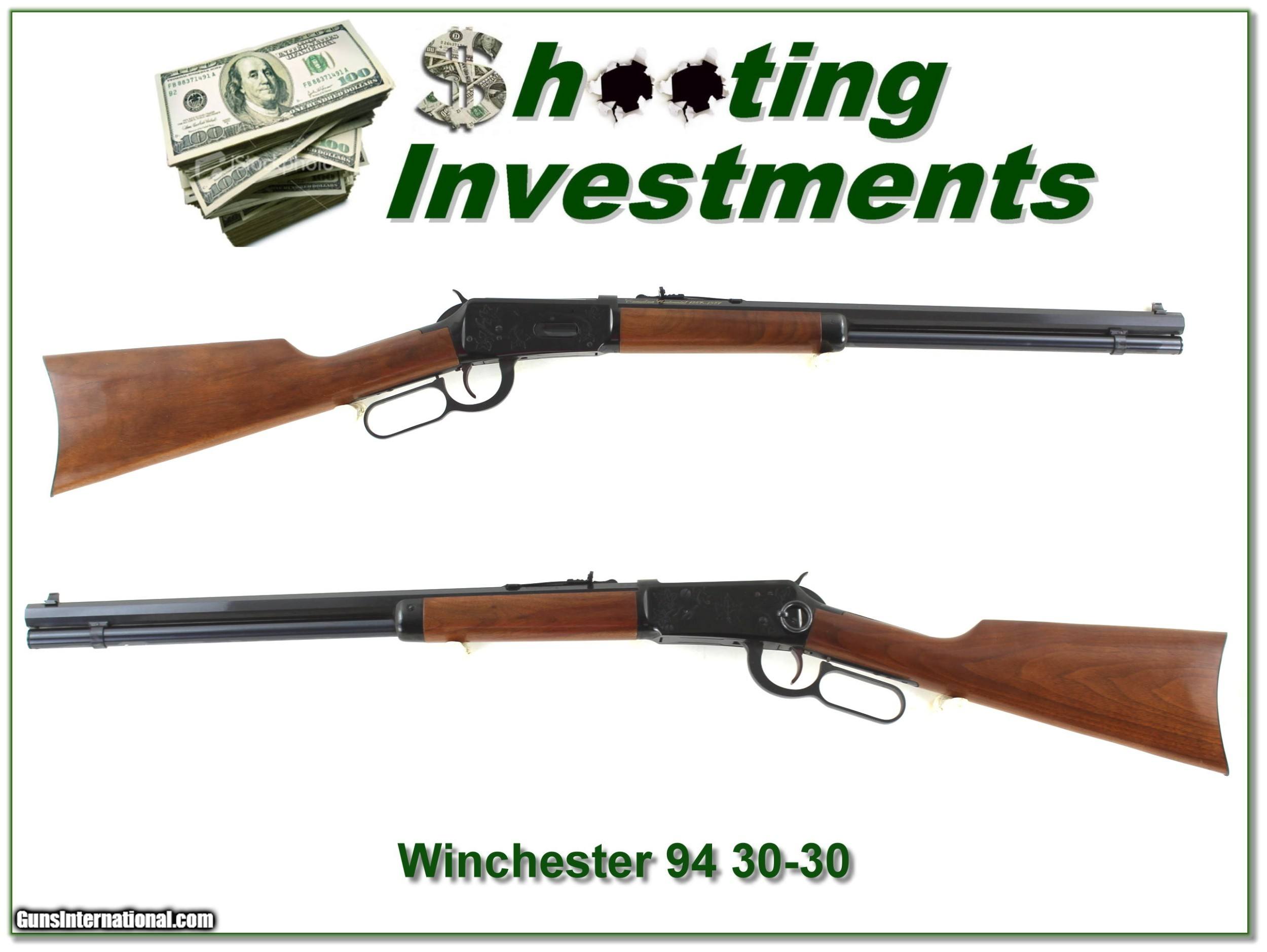 Description: This is an excellent condition Winchester Model 94 Carbine made in 1967. It is a Canadian Commemorative with Engraved Maple Leaves. It has a 20in Octagonal barrel. I find no marks on the blue and only a couple of insignificant handing marks on the wood. I am selling this one on consignment and as such lay-a-way can’t be used. It does of course have the standard 3-day inspection. Shipping and insurance is $39. Please email me with any questions or larger pictures. (Consign your quality firearms with Shooting Investments for only 12%! Let me know if you have any you would like to sell!) 21-1130 Payment: Payment is by Money Order, Cashiers Check or Personal Check. I can now also accept Credit Cards (MasterCard, Visa, Discover & American Express) with a 3% convenience fee. Shipping: The shipping charge will be listed in each description. It is $39 for most firearms. Some heavy guns or those insured for over $2000 will be higher. Shipments to Alaska and Hawaii are higher because air shipment is required. Most firearms are shipped on Tuesday and Thursday and usually in 5 days of receipt of payment. We package all shipments carefully and insure them. Optics are shipped Priority Mail and most other non-firearm shipments are shipped First Class. Returns: Our return policy is simple. If for any reason you are not pleased with your purchase, you may return your item for a full refund of purchase price. Ammunition cannot be returned. It is important to us that you are happy. Guns cannot be fired or dissembled before returning them and they must be returned in the same condition as received. Notification of a return must occur with-in 3 days of receipt at your dealer. Shipping, convenience and dealer fees are not refundable and are the responsibility of the buyer. Lay-a-way: If needed, we offer a 60 day lay-a-way option on most firearms. It is 1/3 now, 1/3 in 30 days and 1/3 in 60 days. Lay-a-way firearm sales are final and if not completed the first payment cannot be returned. Consigning your firearms with Shooting Investments: We will help you get top dollar for your firearms. While most local guns shops charge 20% or more, our fee is only 12% with a minimum of $75. At your local gun shop it might take months to sell. Selling on-line provides instant access to thousands of interested buyers. You won’t find any other on-line dealer willing to sell your firearms for only 12% or listing every gun on 3 separate s. Selling through an House typically costs the seller 15% and the buyer an addition 15% (so 30%) and you have to wait several months to sell and longer to receive funds. If properly priced, we will sell your firearms in a few weeks. Send us an email or give us a call and we’ll explain how easy it is for you to get top dollar. Trading: Trading for use is really just buying your gun to re-sell. If you have a gun you want to trade, please email a picture and we will let you know what we can give or it. You will always get more if we sell it for you on consignment. Help for California Buyers: We are happy to ship to California. It is the buyer’s responsibility to make sure any item you buy is legal in your state. We are also happy to help with your purchase of a firearm from someone other than us. If you see a gun you would like to buy but the seller can’t or won’t ship to California they can ship to use and we’ll then ship it to your California dealer. The cost for this service is only $30 + shipping. Let us know if we can help! SOLD |