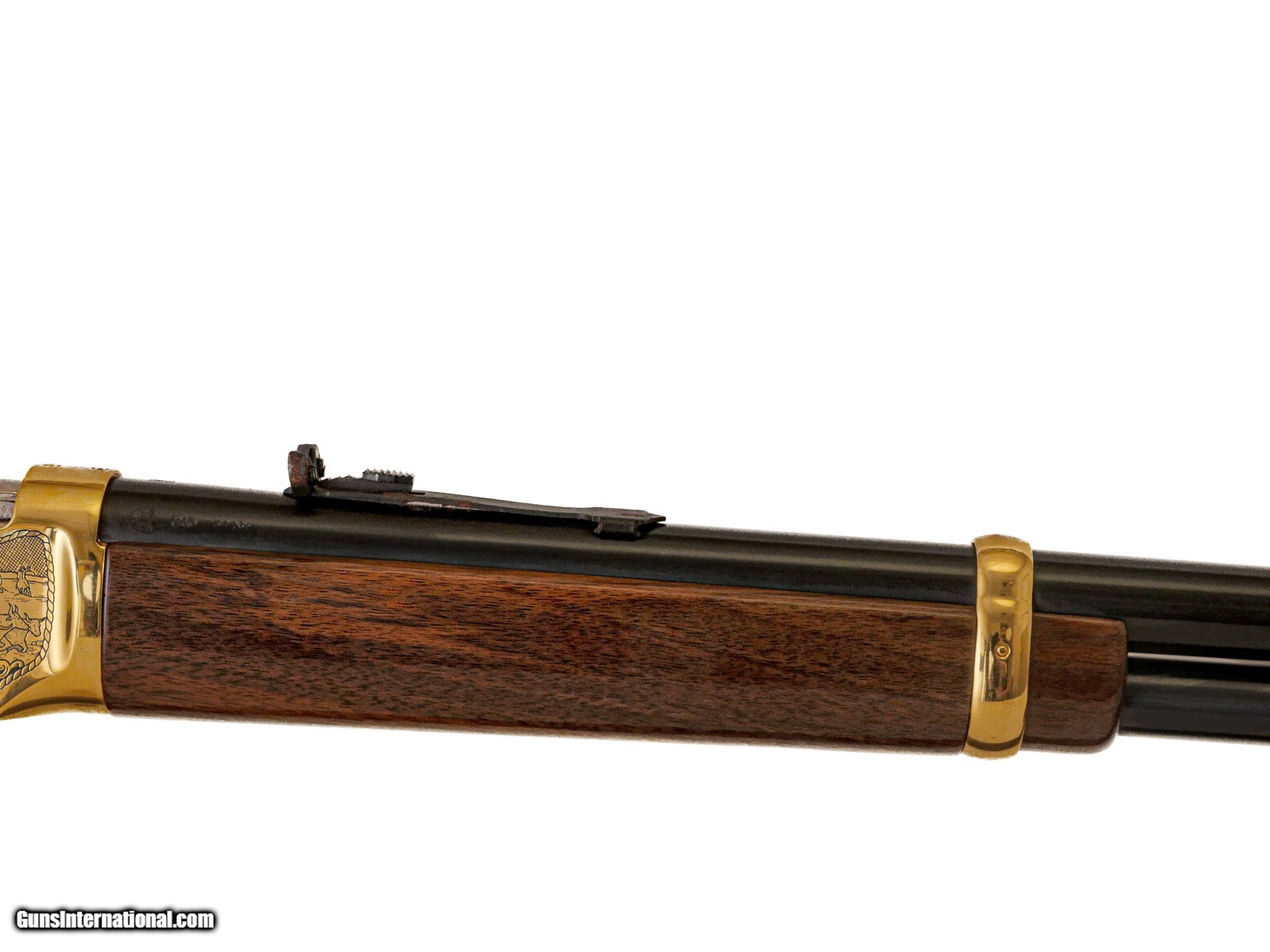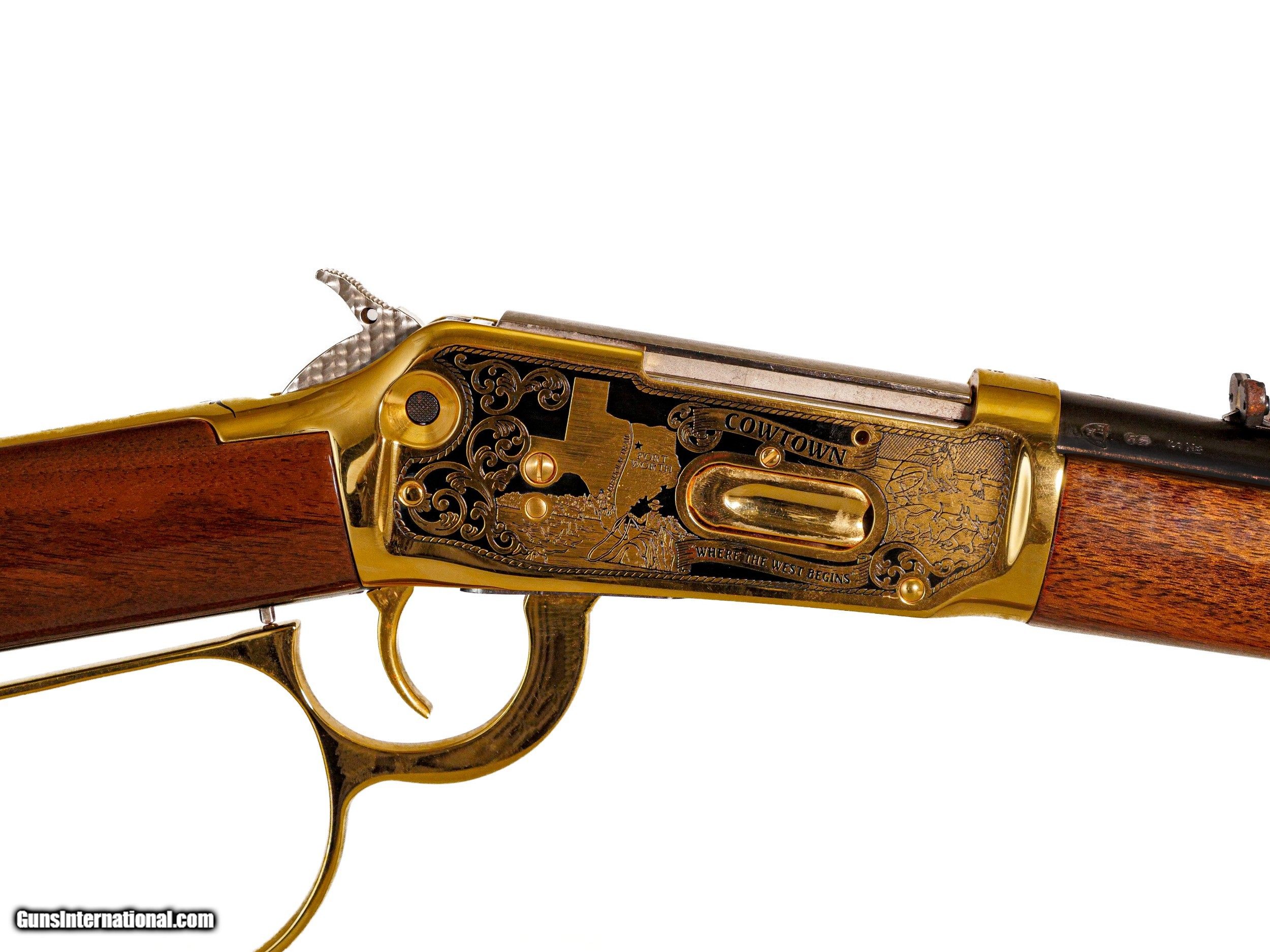 Description: Winchester - Model 94 Carbine, Fort Worth Tribute, .30-30. 20" Barrel. Gold washed receiver with splendid Fort Worth motifs, large loop lever, New Haven manufacture, 100% new and appears unfired, available for immediate delivery. Inv: 50898 6 lbs. 2 oz. 13 1/2" LOP $1,999.00 SOLD |