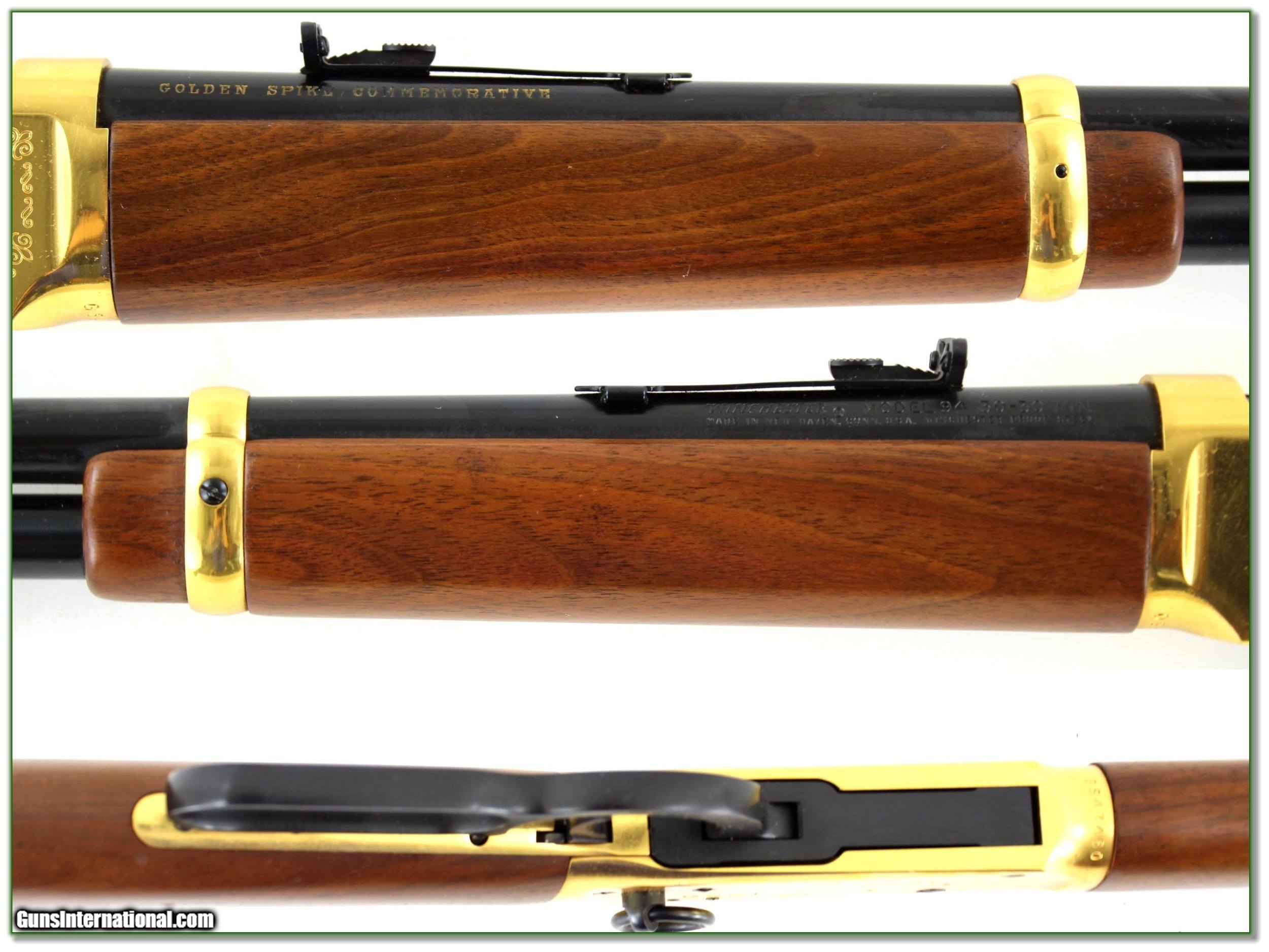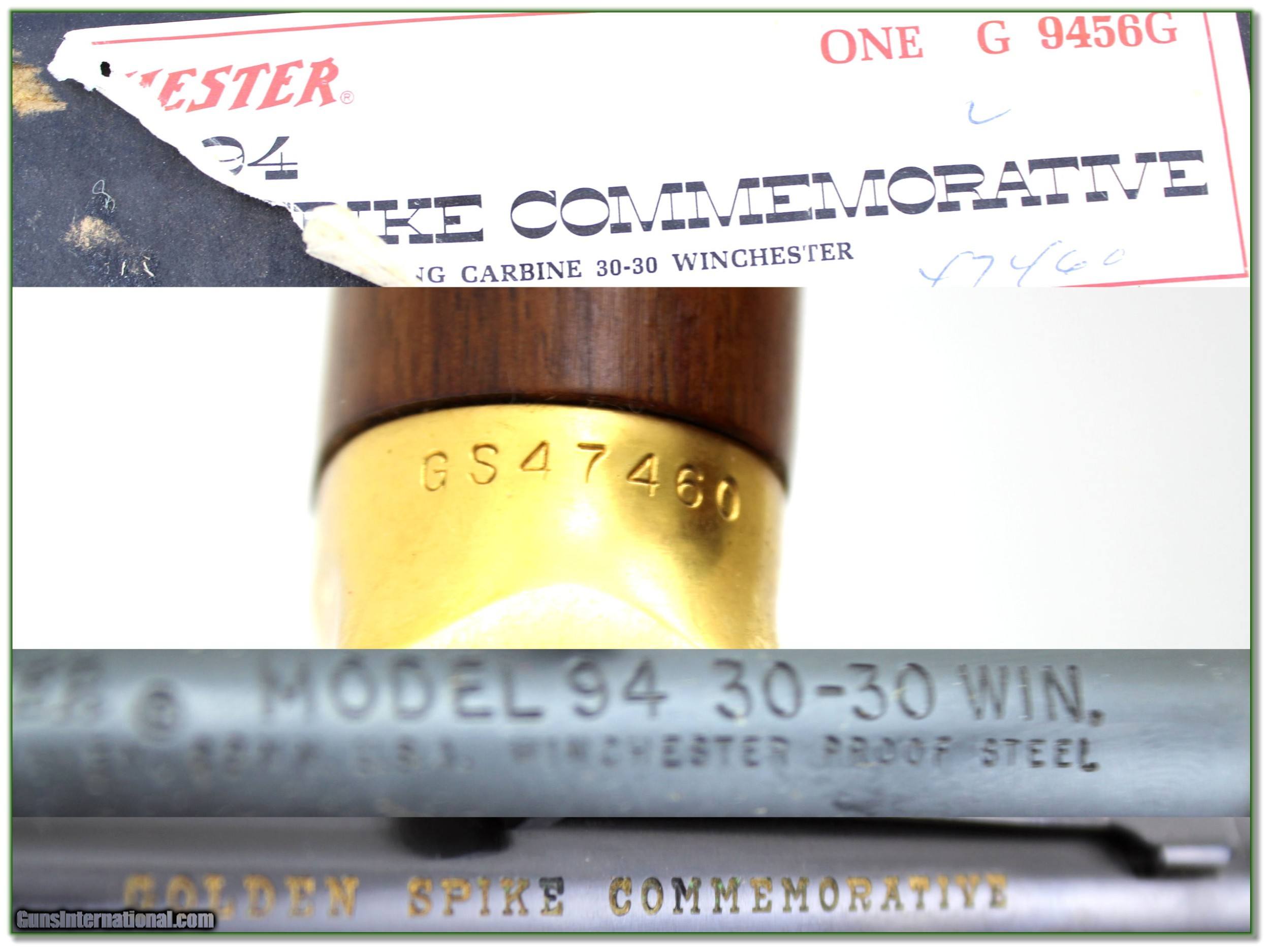 Description: This is a new, unfired and perfect Winchester Model 94 Golden Spike Commemorative, It is a 30-30 and comes as seen, unfired in box with all papers. The box is even perfect! You can’t find a nicer example. Shipping and insurance is $39. Please email me with any questions or larger pictures. (Consign your quality firearms with Shooting Investments for only 12%! Let me know if you have any you would like to sell!) 20-0825 Payment: Payment is by Money Order, Cashiers Check or Personal Check. I can now also accept Credit Cards (MasterCard, Visa, Discover & American Express) with a 3% convenience fee. Shipping: The shipping charge will be listed in each description. It is $39 for most firearms. Some heavy guns or those insured for over $2000 will be higher. Shipments to Alaska and Hawaii are higher because air shipment is required. Most firearms are shipped on Tuesday and Thursday and usually in 5 days of receipt of payment. We package all shipments carefully and insure them. Optics are shipped Priority Mail and most other non-firearm shipments are shipped First Class. Returns: Our return policy is simple. If for any reason you are not pleased with your purchase, you may return your item for a full refund of purchase price. Ammunition cannot be returned. It is important to us that you are happy. Guns cannot be fired or dissembled before returning them and they must be returned in the same condition as received. Notification of a return must occur with-in 3 days of receipt at your dealer. Shipping, convenience and dealer fees are not refundable and are the responsibility of the buyer. Lay-a-way: If needed, we offer a 60 day lay-a-way option on most firearms. It is 1/3 now, 1/3 in 30 days and 1/3 in 60 days. Lay-a-way firearm sales are final and if not completed the first payment cannot be returned. Consigning your firearms with Shooting Investments: We will help you get top dollar for your firearms. While most local guns shops charge 20% or more, our fee is only 12% with a minimum of $75. At your local gun shop it might take months to sell. Selling on-line provides instant access to thousands of interested buyers. You won’t find any other on-line dealer willing to sell your firearms for only 12% or listing every gun on 3 separate s. Selling through an House typically costs the seller 15% and the buyer an addition 15% (so 30%) and you have to wait several months to sell and longer to receive funds. If properly priced, we will sell your firearms in a few weeks. Send us an email or give us a call and we’ll explain how easy it is for you to get top dollar. Trading: Trading for use is really just buying your gun to re-sell. If you have a gun you want to trade, please email a picture and we will let you know what we can give or it. You will always get more if we sell it for you on consignment. Help for California Buyers: We are happy to ship to California. It is the buyer’s responsibility to make sure any item you buy is legal in your state. We are also happy to help with your purchase of a firearm from someone other than us. If you see a gun you would like to buy but the seller can’t or won’t ship to California they can ship to use and we’ll then ship it to your California dealer. The cost for this service is only $30 + shipping. Let us know if we can help! SOLD |