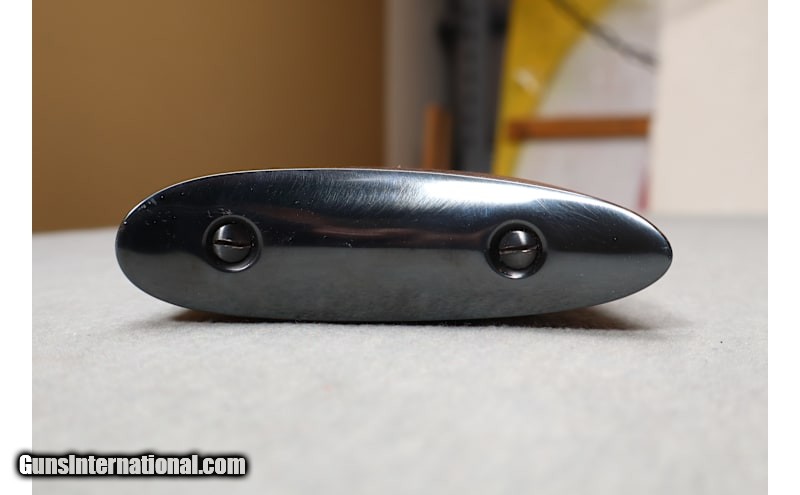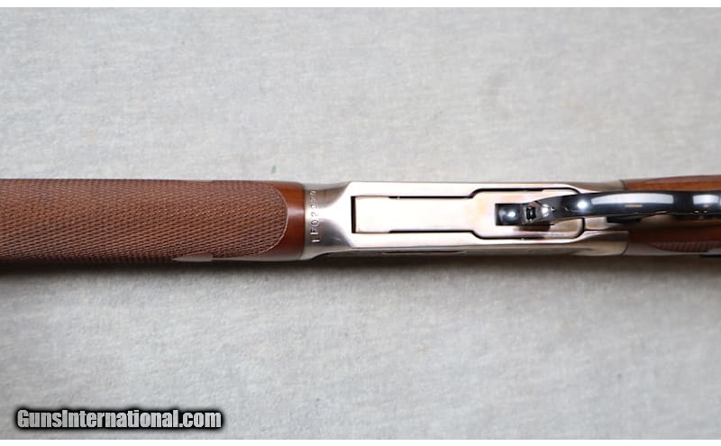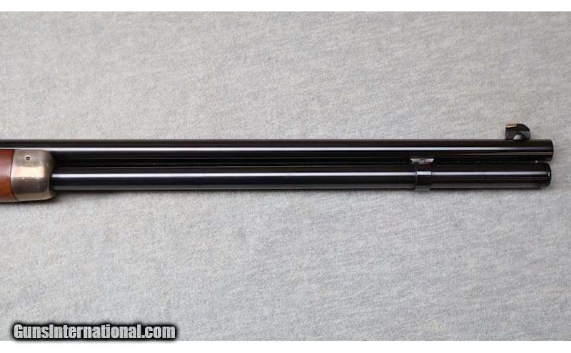 Description: Winchester Model 1894 Legendary Frontiersmen 38-55 Lever Rifle Markings: The left of the barrel is marked "WINCHESTER — MODEL 94 38-55 WIN. / MADE IN NEW HAVEN, CONN. U.S.A. WINCHESTER PROOF STEEL", the top at the rear has an ovalled "WP" proof. The right side of the barrel is marked "Legendary Frontiersman". The bottom of the receiver is marked with the serial number at the front. Both sides of the receiver show decorative scroll and border engraving. The right side of the receiver shows wild animals and a frontiersman greeting Indians. The left side of the receiver shows an eagle swooping prey and a frontiersman on horseback guiding other horses. Stock Configuration & Condition: The stocks are two-piece checkered wood with a capped forend, straight grip, straight comb, and a blued steel buttplate. There is a medallion on the right side of the buttstock depicting an Indian and frontiersman in battle. The wood shows no perceptible wear. The checkering is sharp. The LOP measures 13 1/2" from the front of the trigger to the back of the buttplate. The plate has no wear. Overall, the stocks are in about Excellent condition. In 1979, Winchester produced 19,999 Model 94 Legendary Frontiersmen rifles in their New Haven, Connecticut, USA factory. The serial numbers ran consecutively from LF1 to LF19999. These post-1964 Model 94 actions were the later type with good steel receivers and improved shell elevators and loading gates. This example comes with the original box. .38-55 Winchester Metal Condition: very good Wood Condition: very good Bore Condition: bright Barrels: 24" barrel Stock Dimensions: The LOP measures 13 1/2" from the front of the trigger to the back of the buttplate. Fore End: checkered wood Butt Pad: metal Weight: 6 lb - 8 oz. Sights: The front sight is a beaded blade dovetailed to the front of the barrel. Marbles rear peep sight added to the tang. Item Location: La Vista, NE Price: $1,299.99 Contact Seller |