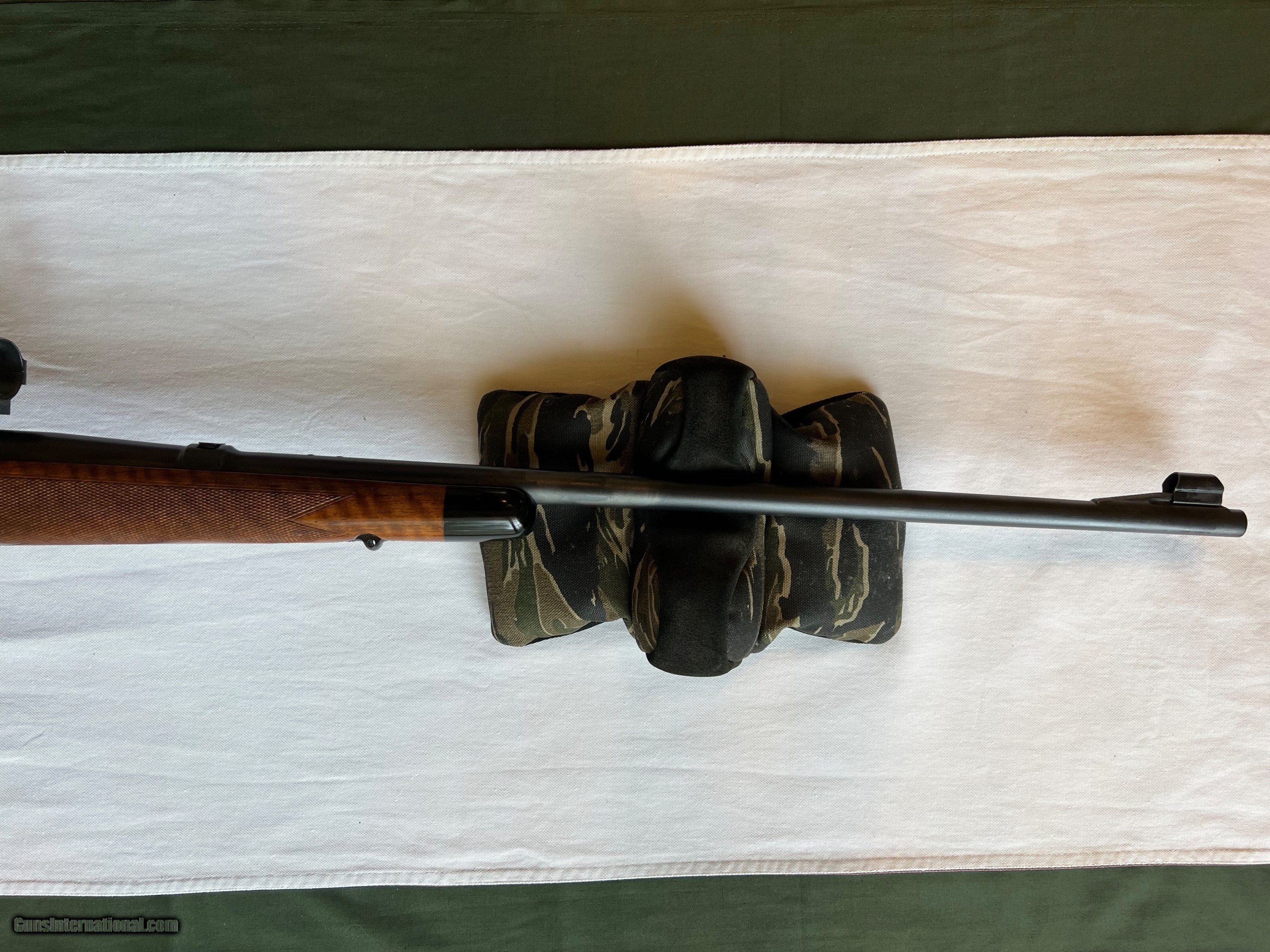 Description: Hard to find .220 swift! All wood, metal and bore in exceelent shape with one mark on wood at center left of butt stock. Beautiful finish on this heavy, solid and extremely fast rifle. Both scope bases and rings are included in the sales price. Price is firm on this one. SOLD Rifle Caliber: .220 Swift Manufacturer: Winchester Model: 70 Super Grade Serial Number: 42399 Barrel Length: 27 Condition: Excellent Metal Condition: Excellent Wood Condition: Excellent Bore Condition: Excellent Barrels: Single Barrel Type: Steel Action: Bolt Triggers: Single Finish: Walnut |