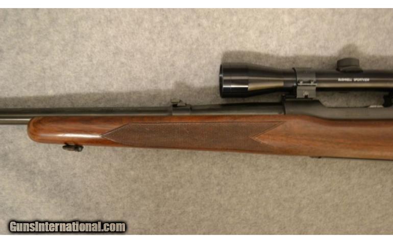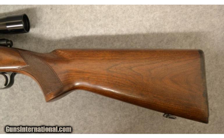 Description: Great medium game rifle. Perfect for hunting or target shooting. A great piece for an avid Winchester collector. SOLD Curio/Relic: Yes Manufacturer: Approx. 1951 ; SN-173549 Caliber Info: .270 WIN Metal Condition: Shows original finish with light handling marks. Wood Condition: Shows original finish with light handling marks. Bore Condition: Clean with sharp lands. Barrels: 24 Triggers: Factory. Stock: American walnut with pistol grip and sharp checkering. Stock Dimensions: 13 7/8" LOP Fore End: American walnut with sharp checkering. Butt Pad: Factory metal buttplate. Weight: 7 3/4 lb. Sights: Fixed front bead with folding rear leaf and Bushnell Sportview 4x scope. Item Location: Anchorage, AK |