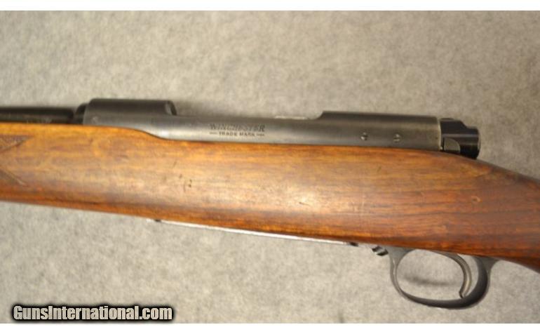 Description: Beautiful Model 70. Perfect for hunting medium sized game at moderate distances. Excellent piece for any Winchester collector. SOLD Manufacturer: Approx. 1962 ; SN- 549261 Caliber Info: .264 WIN MAG. Metal Condition: Shows original finish with light handling marks and field use. Wood Condition: Shows original finish with light handling marks and field use. Bore Condition: Clean with sharp lands. Barrels: 22 Triggers: Factory. Stock: American walnut with pistol grip, raised comb, and sharp checkering. Stock Dimensions: 13 3/4" LOP. Fore End: American walnut with sharp checkering. Butt Pad: Winchester logo red rubber. Weight: 6 lb. 13 oz. Sights: Open sights. Item Location: Anchorage, AK |