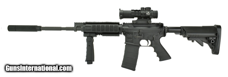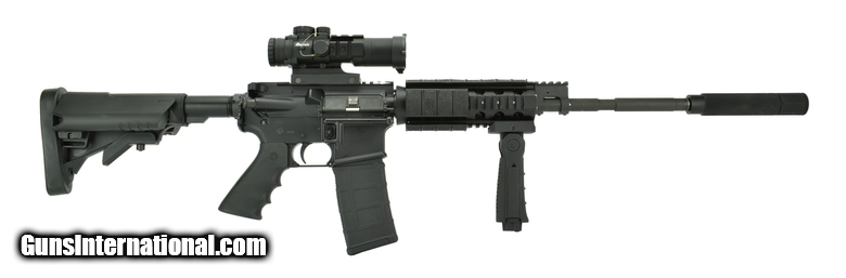 Description: Windham WW-15 5.56mm caliber rifle. Windham AR-15 comes with Burris 3x Prism optic and a faux silencer in great condition.