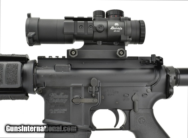 Windham WW-15 5.56mm caliber rifle. Windham AR-15 comes with Burris 3x Prism optic and a faux silencer in great condition.