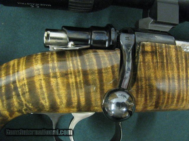 Description: 7251 Winslow Commander Custom rifle mfg in Florida Circa 1975, Belgium Mauser 98 action, only approx 500 mfg, 300 win mag, 26 inch barrel AAA++ Fancy TIGER STRIPED FIGURE,claw extractor, Swarovski 6 I P HD 5 x 30 x50 plex recticle scope, 9.5 lbs 2nd focal plane 30mm tube matt black wide field of vision.high end rifle and scope combo.just like new, came from Texas, collection, 12 more Winslows will be listed over the coming days. --210 602 6360 SOLD Rifle Caliber: .300 Winchester Magnum |