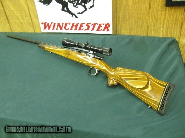 Description: 7259 Winslow COMMANDER MODEL ON BUSHMASTER STOCK Custom rifle mfg in Florida Circa 1975, Belgium Mauser 98 action, only approx 500 mfg,300 Win Mag, 26 inch barrel INLAY SHIELD,claw extractor,BUSHNELL 2.5x8 scope 8lbs rifle and scope combo.99%, came from Texas, collection,ROSEWOOD TIPS AND INLAYS. laminated DRAMATIC STOCK--210 602 6360-- SOLD Rifle Caliber: .300 Winchester Magnum |