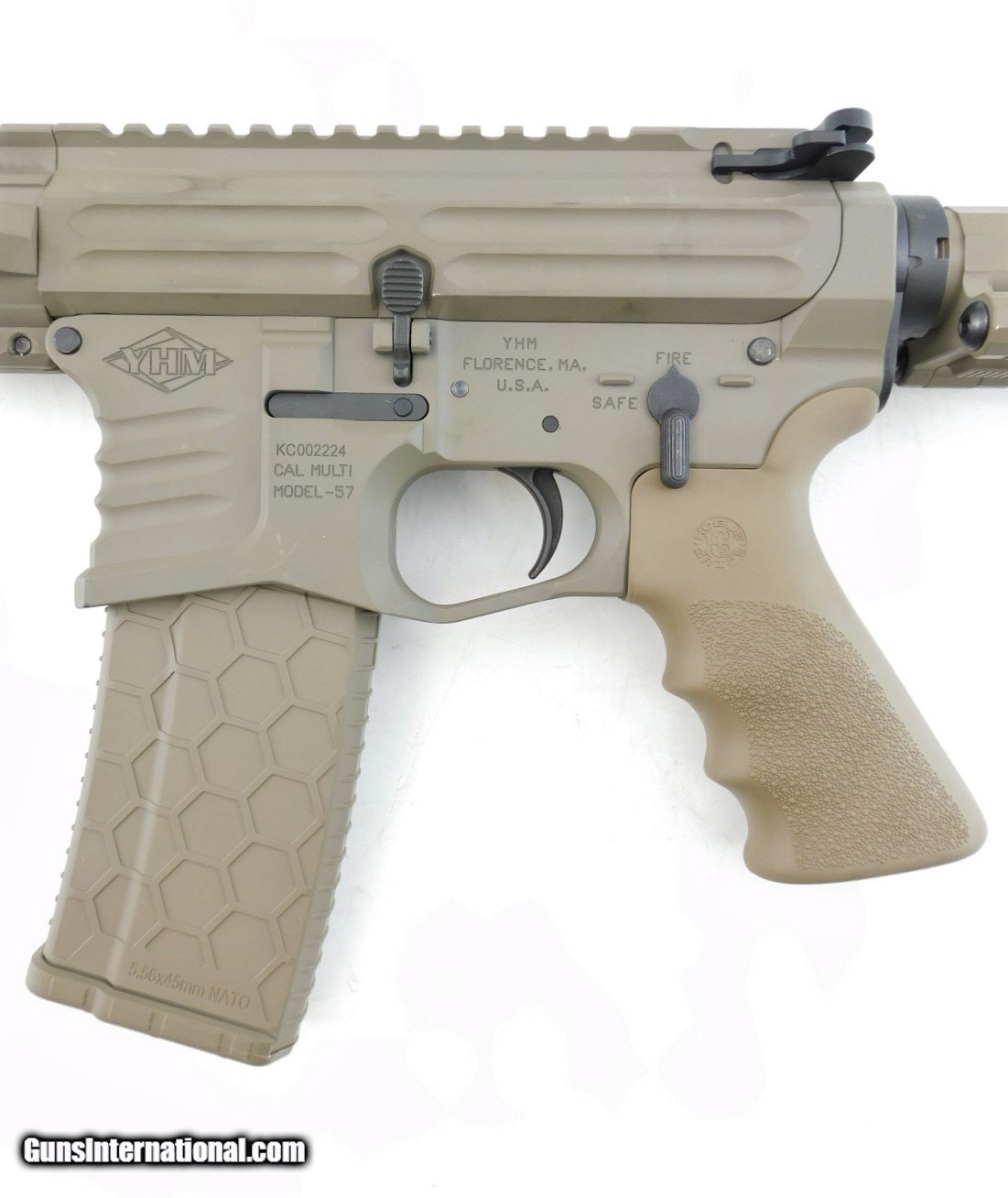Description: YHM 57 5.56, 16" blued bbl with flash hider, bright shiny bore, good rifling, no sights, FDE finish, 13 1/2" heat shield - full top Picatinny rail, Troy BCG - adjustable butt stock, Hogue pistol grip, and one 30 round magazine. Add 3% for Credit Card Shipping $35.00 SOLD |