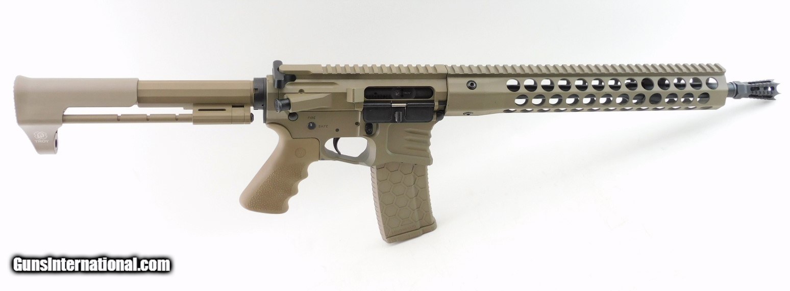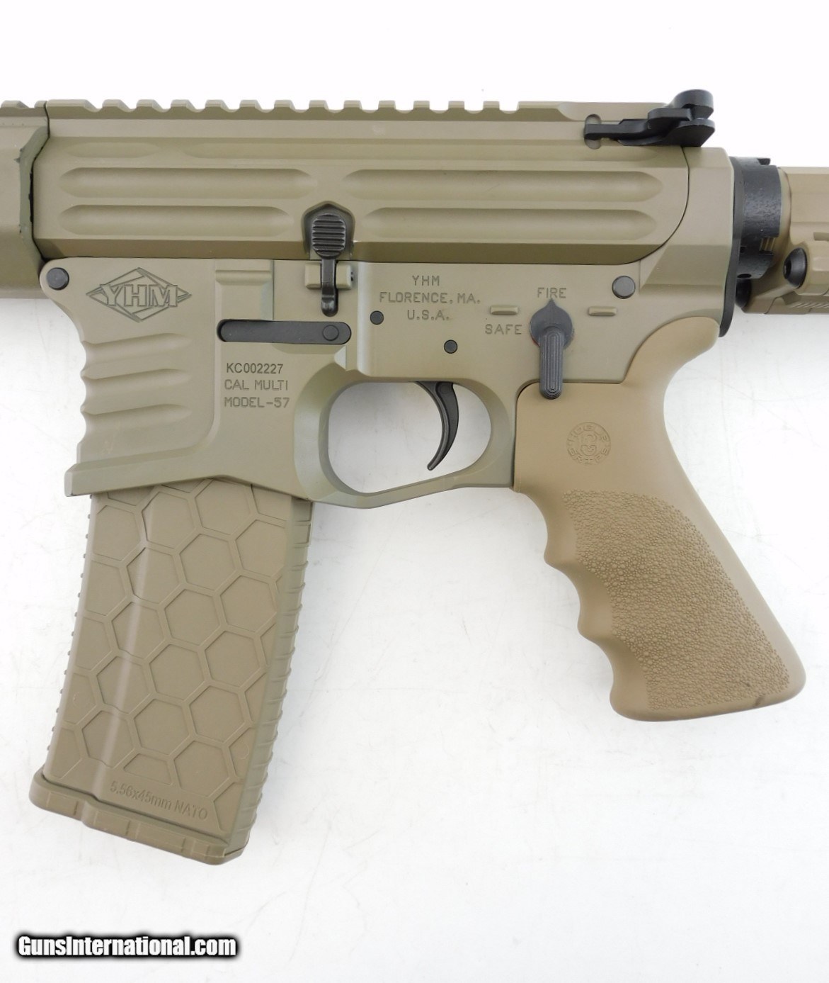 Description: YHM 57 5.56, 16" blued bbl with flash hider, bright shiny bore, good rifling, no sights, FDE finish, 13" heat shield - full top Picatinny rail, Troy BCG - adjustable butt stock, Hogue pistol grip, and one 30 round magazine. Add 3% for Credit Card Shipping $35.00 SOLD |