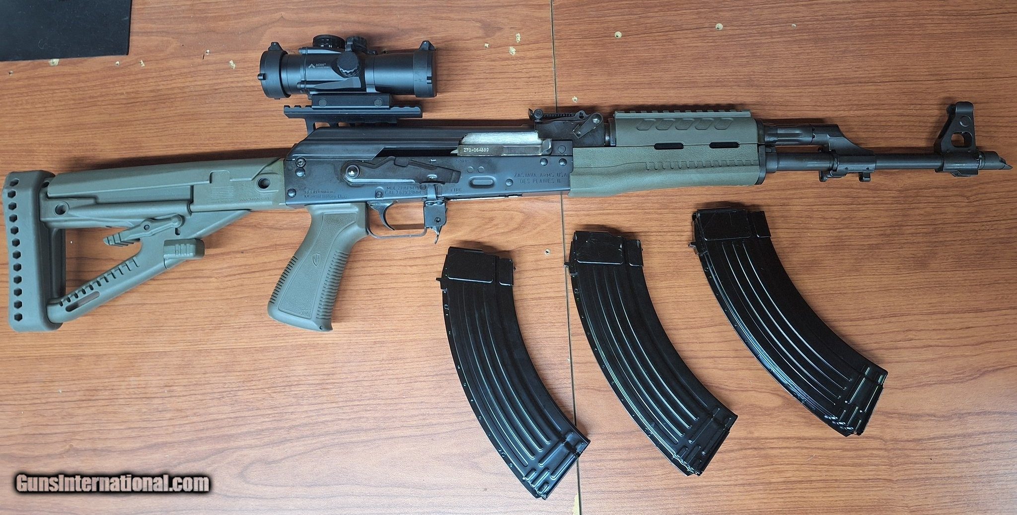 Description: Guns Listing ID: 592200 ZASTAVA ZPAPM70 7.62X39MM, 16.5\" Barrel, 3 x 30 Round Magazines, Primary Arms Scope - ACSS Reticle - 7.62x39 / .300 BO (BLK OUT), Archangel Opfor Series Buttstock Grip Set AK-47 OD Green. INV#0529148/EMM/DO Manufacturer: ZASTAVA ARMS Model: ZPAPM70 Caliber Info: 7.62X39MM Condition: Used - Non-Certified Barrels: 16" BARREL Action: SEMI AUTOMATIC Finish: black Price: $999.99 Contact Seller |