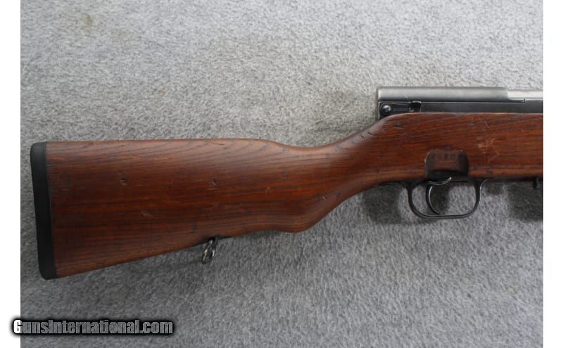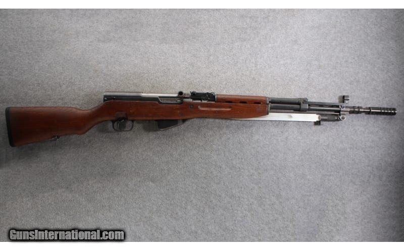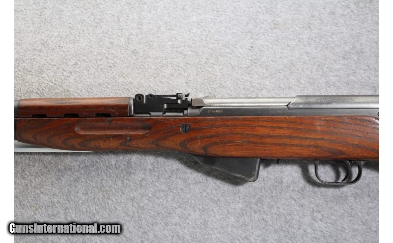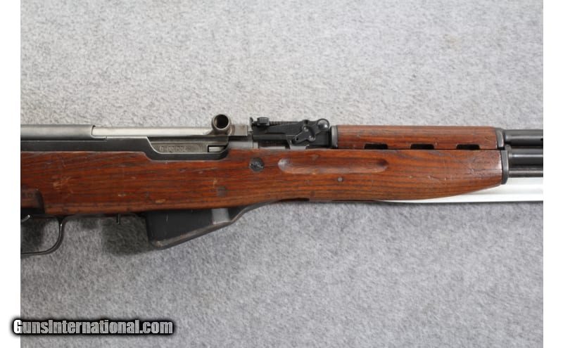 Description: A Zastava M59/66 (SKS) in 7.62x39mm with a 23 inch barrel, threaded with flash hider (used as grenade launcher attachment point), and grenadier front sight 7.62X39mm SOLD Metal Condition: Excellent with heavy wear on edges Wood Condition: Excellent with wear Bore Condition: Bright and Shiny Barrels: 23 inches with flash hider Triggers: Single action auto Stock Dimensions: 12 3/4 inches LOP Fore End: Wood Butt Pad: Hard Rubber Weight: 9 Lbs. 8 Oz. Sights: "Iron sights Adjustable, with Grenadier front sight Item Location: Richfield, WI |