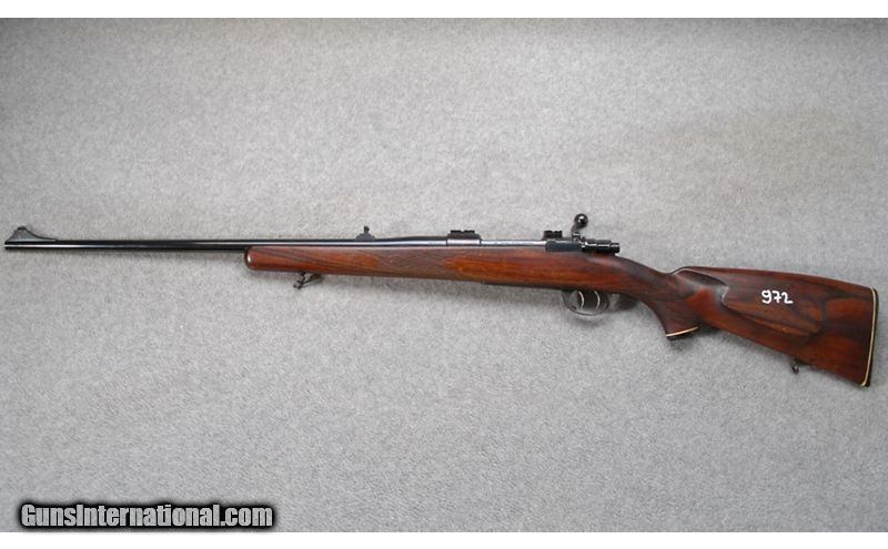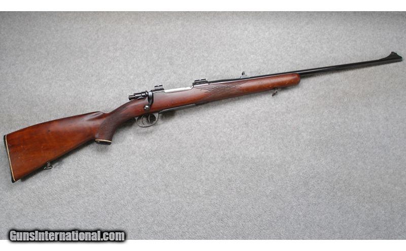 Description: 8x57mm JS SOLD Chambers: Bolt action repeater. Metal Condition: Good. Wood Condition: Good. Bore Condition: Good. Barrels: "24"" bbl, blued. Triggers: Double set trigger. Stock Dimensions: 14 1/2" Lop. Butt Pad: Factory butt plate. Weight: 7 Lb. 14 Oz. Sights: Factory iron sights. Item Location: Dundee, MI |