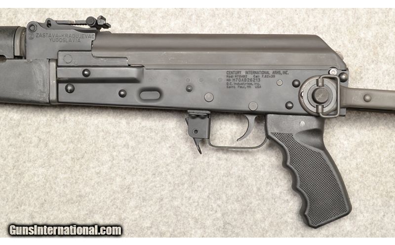 Description: This Zastava M70AB2 is in excellent condition and will make a great option for home defense or just taking out to the range. This Yugoslavian version of the Russian AK-47 is sure to catch some eyes with its folding stock and grenade launcher front sight. During the Cold War the M70 was the rifle issued to Yugoslavian solders until being replaced by other modern designs. The action is sturdy and smooth and is followed by a crisp trigger break. 7.62x39mm SOLD Chambers: 7.62X39MM Metal Condition: Excellent Bore Condition: Excellent Barrels: "Rifled, 17"" Stock Dimensions: 14" LOP Fore End: Synthetic Butt Pad: Metal foldable stock Weight: 7 lbs Sights: "Front and rear iron sights, Grenade launcher sight Item Location: Columbus, OH |