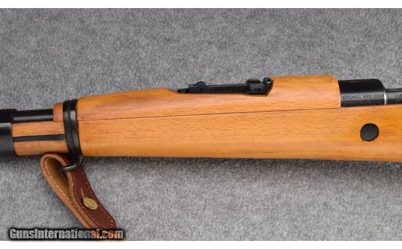 Description: This Zastava (Mitchell's Mauser's) Model 63 in .30-06 Springfield remains in excellent condition. It features a handsome wood stock and an 18" barrel. The bore is bright with distinct rifling. A leather sling is attached and the original Mitchell's Mauser's box is included. .30-06 Springfield SOLD Metal Condition: Excellent Wood Condition: Excellent Bore Condition: Excellent Barrels: 18 Triggers: Factory Stock Dimensions: 13" LOP Fore End: Uncheckered Semi Pistol Grip Stock - Uncheckered Forend Butt Pad: Metal Plate Weight: 7.5 lbs Sights: Blade Front - U Notch Rear Item Location: Wheeling |