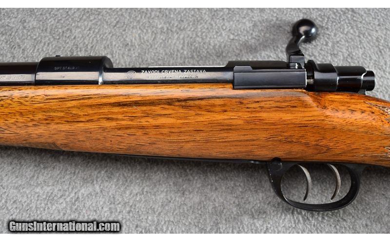 Description: Manufactured in Yugoslavia this Zastava LK M70 is in excellent overall condition showing only light use. Wood is solid showing only a few light use marks. Pistol grip cap and butt plate are contrasting color and may both be wood. Blue and bore are also excellent. This is a Controlled Round Feed action. Receiver has been drilled and tapped for scope, with post and bead front sight and folding notch rear.Very nice gun! No box. .30-06 Springfield SOLD Metal Condition: Very Good Wood Condition: Very Good Bore Condition: Excellent Barrels: 24 Triggers: Double Set Trigger Stock Dimensions: 13 1/4" LOP Fore End: Checkered Walnut Pistol Grip with Contrasting Pistol Grip Cap with Monte Carlo Cheekpiece - Checkered Walnut Forend Butt Pad: Uncheckered Black Butt Plate Weight: 7 lbs Sights: Post & Bead Front - Folding Notch Rear Item Location: Wheeling |