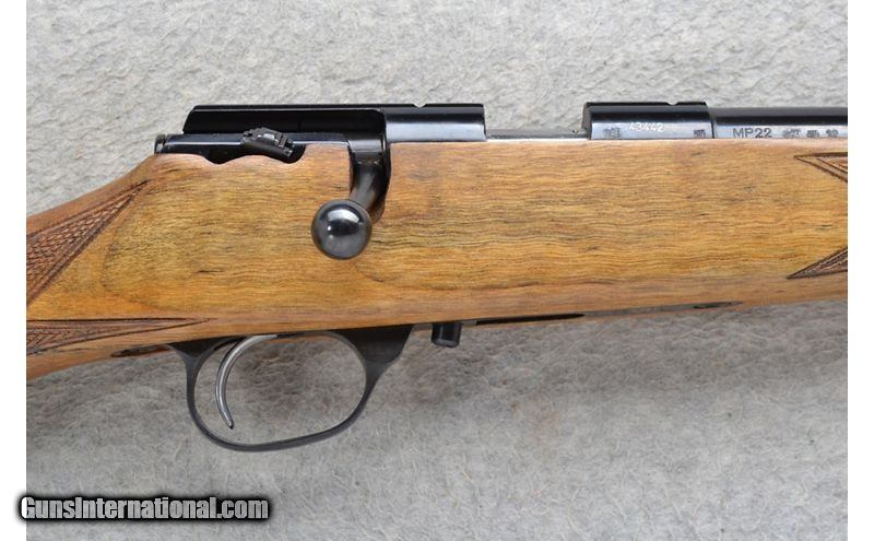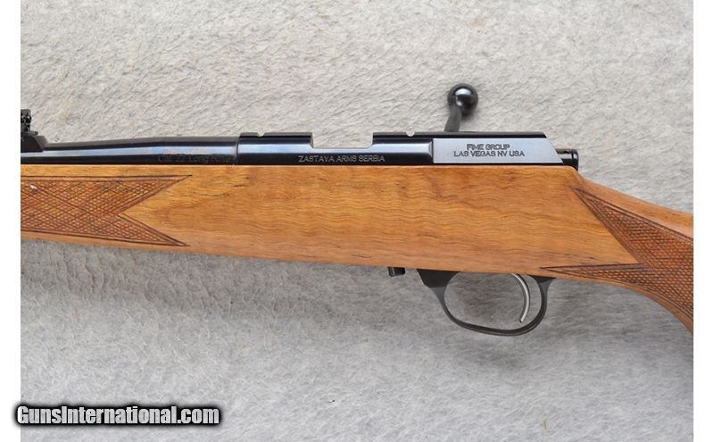 Description: This Zastava Model MP22 is a right hand bolt action rifle in .22 Long Rifle Cal. It has a 22 inch barrel. The raised blade front sight is hooded. It has a raised folding adjustable notch middle sight. The butt stock is a diamond checkered walnut pistol grip. The forearm is a diamond checkered walnut. This is a very nice looking rifle with an aesthetic wood grain pattern. .22 Long Rifle SOLD Chambers: Right hand bolt action detachable magazine. Metal Condition: Excellent. Wood Condition: Excellent with a few minor handling marks. Bore Condition: Excellent. Barrels: 22 inch. Stock Dimensions: LOP 14 inches. Fore End: Diamond checkered walnut. Butt Pad: Zastava ribbed plate. Weight: 5 lb. 13 oz. Sights: Hooded blade front. Raised folding adjustable notch middle. Item Location: Richfield, WI |