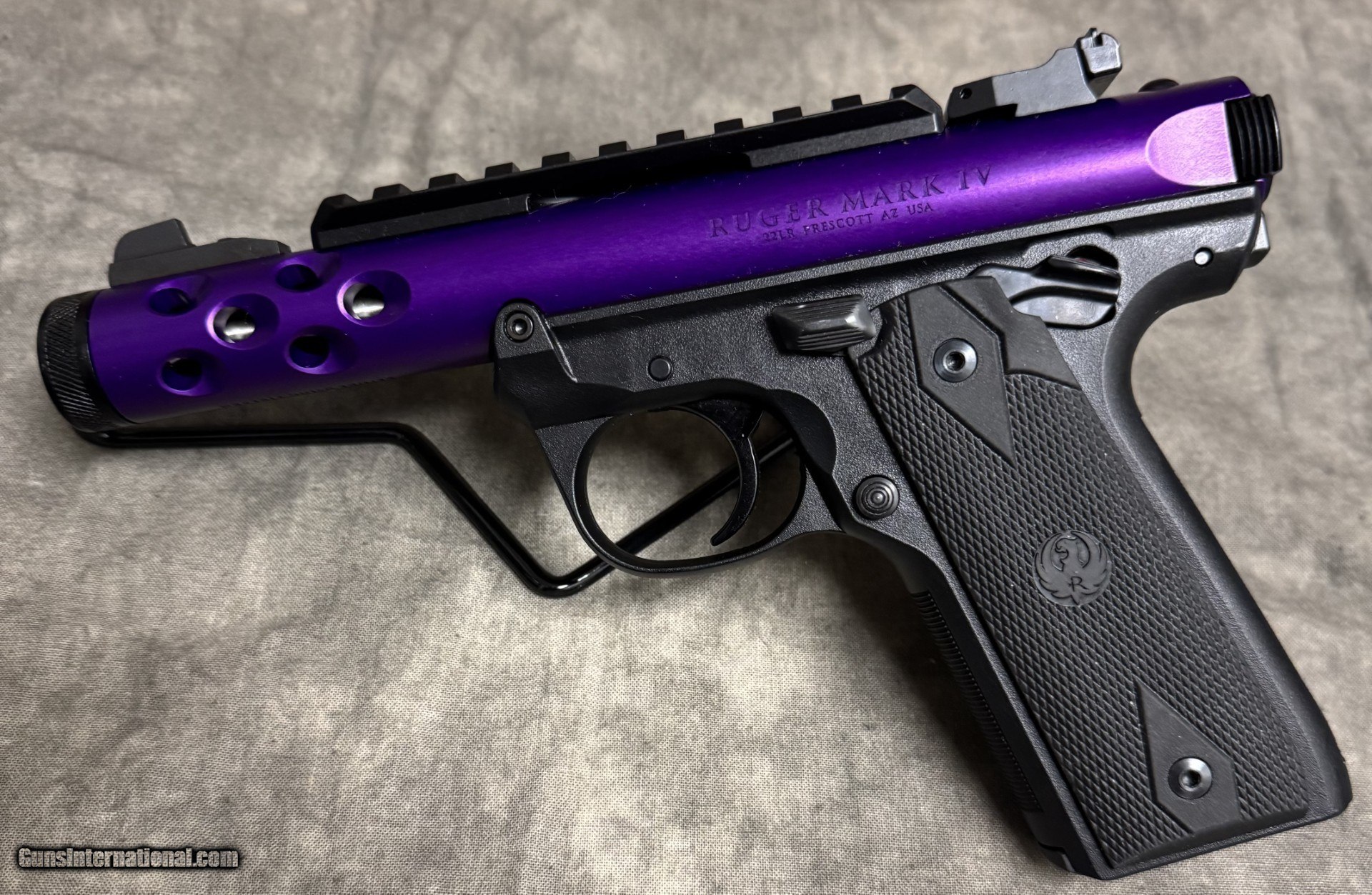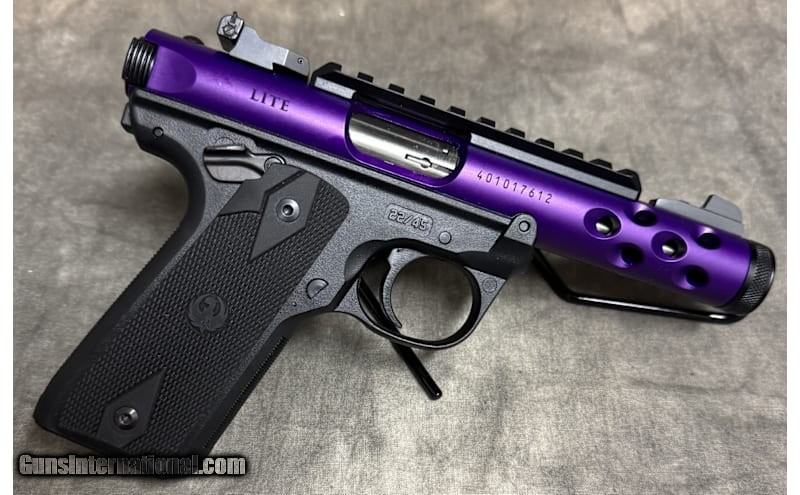 Description: This Ruger 22/45 MK IV Lite features an anodized purple finish. It is chambered in .22 LR and has 4.5" threaded barrel. It comes with 4 factory 10-round magazines. .22 Long Rifle Chambers: .22 LR Metal Condition: Excellent Bore Condition: Excellent Barrels: 4.5" Threaded Weight: 1 lb 10 oz Sights: Adjustable target Item Location: Concord, NC Price: $449.99 Contact Seller |