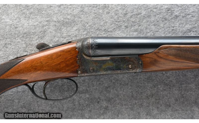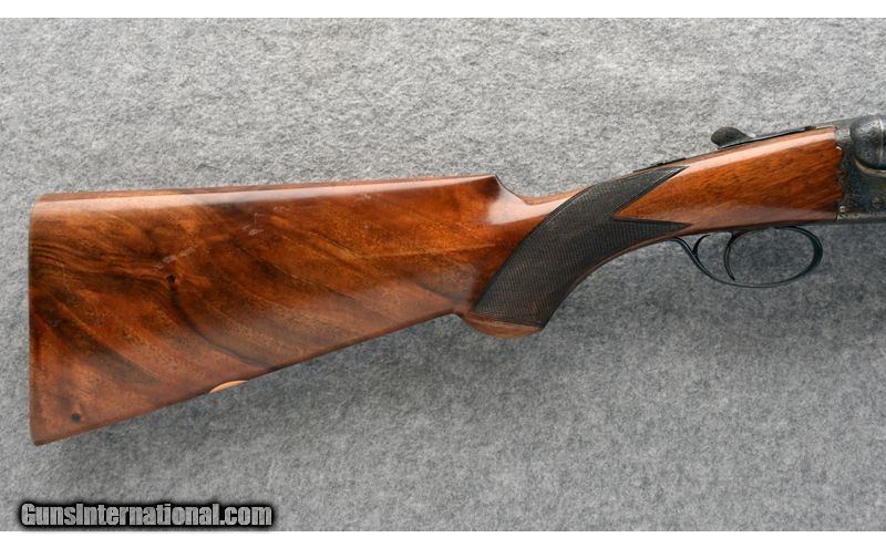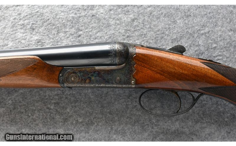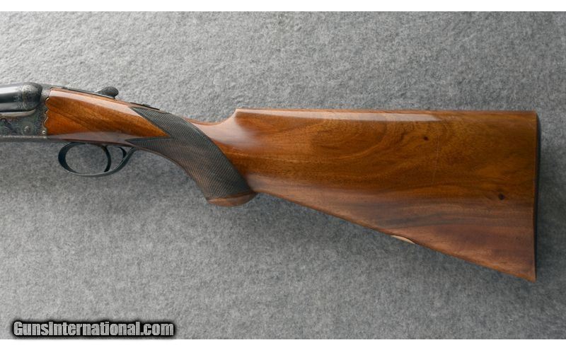 Description: This Fabio Zanotti BLE 12 ga. was manufactured in 1963 and imported by Abercrombie & Fitch. It features a case-hardened Anson & Deeley boxlock action hand-engraved in low-relief rose & scroll, a single non-selective trigger, 26 1/8" Dovetail-lump barrels with Southgate Ejectors, and a sleek Prince of Wales grip. Standard IC / Mod chokes make it an excellent choice for those seeking a lightweight, fast-handling piece that excels in a broad range of scenarios, from high river bluffs and open canyon country right down to the nastiest brambles and alder thickets. 12 Gauge SOLD Chambers: 2 3/4 Metal Condition: "Very good, overall, with handling marks from field use. Wood Condition: "Good, overall. Shows a few streaks, small nicks, and dings. Also shows a chip toward the tip of the fore end, on the right side. Bore Condition: Bright. Barrels: 26 1/8 Triggers: Single Non-selective. Stock Dimensions: 14 1/2" LOP; 1 3/16" DAC; 2 1/16" DAH Fore End: Beavertail w/ Anson Release. Butt Pad: Factory checkered. Weight: 6 lb. 8 oz. Sights: Single bead atop tapered solid rib. Chokes: Fixed: .009" / .019" or IC / Mod. Item Location: Post Falls, ID |