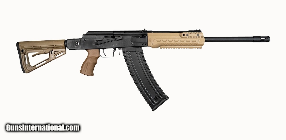 Description: Guns Listing ID: 356833 The Kalashnikov USA KS12TSF shotgun is our 12gauge semiautomatic shotgun based on the Russian Saiga series made here in the United States and customized out of the box for a variety of missions. The KS12TSF accepts 2.75 and 3\" shells from low brass to slugs thanks to our innovative adjustable gas system. It comes equipped with a 6position side folding collapsible buttstock adjustable pistol grip flash suppressor trirail forend ready for any weapon light and standard sidemounted optics rail. The threaded barrel means you can install any muzzle break that fits. The total length comes to 42.5 with the buttstock fully extended and 38.5 when collapsed. Saiga accessories will also work on the KS12TSF including magazines drums muzzle devices and chokes.\ SOLD Manufacturer: IZHMASH Model: KS-12TSF Condition: new Barrels: 18.3 BARREL Gauge Info: 12 GA Finish: BROWN |
