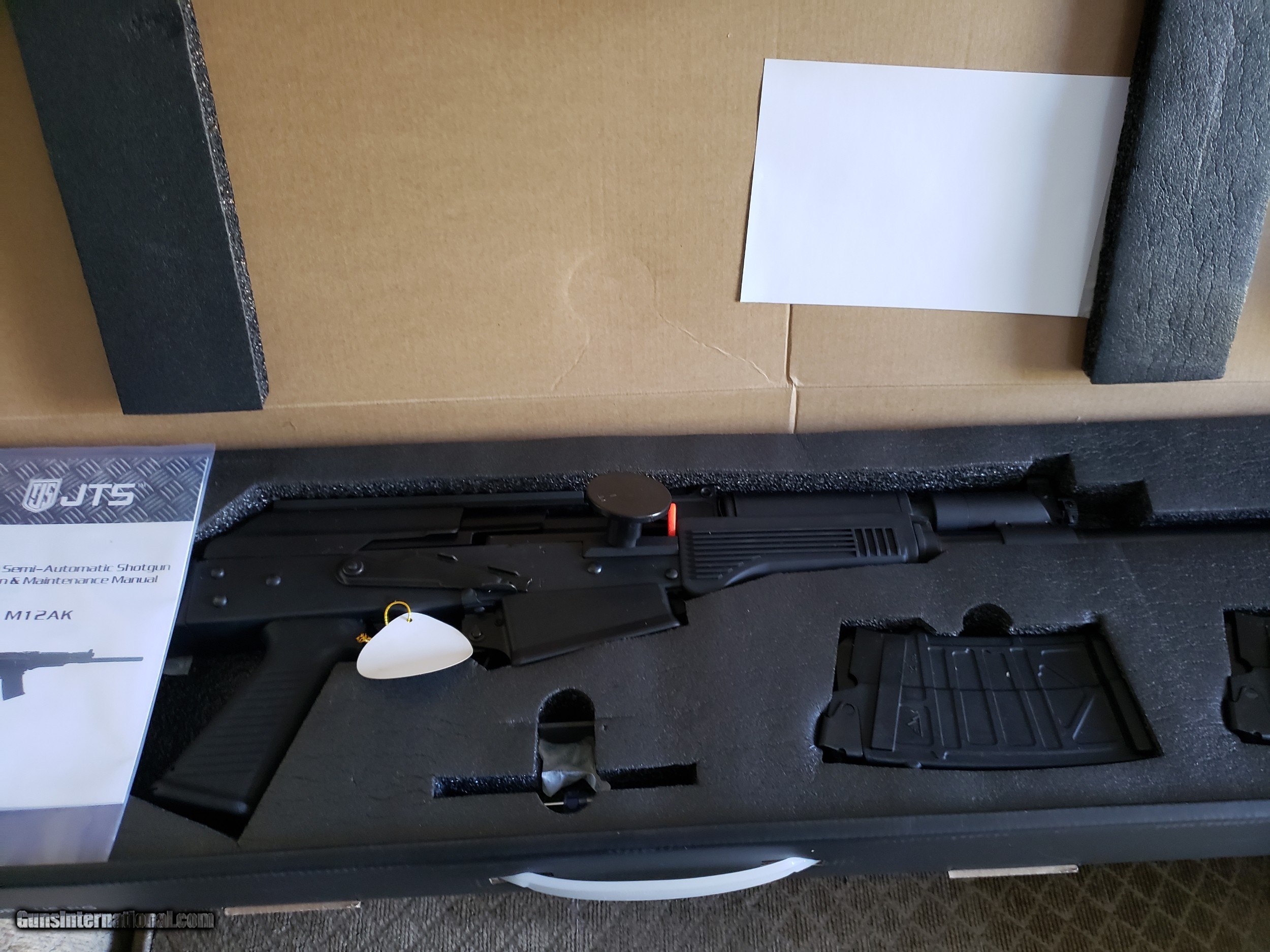 Description: JTS M12AK Semi-Auto Shotgun 12 GA Shoots 2 ¾”and 3”shells Picatinny Rail Chrome lined barrel 4-Position gas system for adjustments based on loads Fits Rem Choke tubes Comes with two 5 round magazines Barrel Length: 18.7” Overall Length: 39.37” ADD 3% FOR CREDIT CARD FEE , USPS MONEY ORDER SAME AS CASH , IF YOU PAY WITH A CHECK YOUR ITEM WILL SHIP ONCE THE CHECK CLEARS OUR BANK, 10% RESTOCKING FEE , 30.00 SHIPPING TO FFL IN THE LOWER 48 STATES, IT IS YOUR RESPONSIBILITY TO KNOW IF THIS ITEM IS LEGAL IN YOUR STATE, PLEASE ALLOW 48 TO 72 HOURS FOR SHIPPING, SOLD Manufacturer: JTS Model: M12AK Barrel Length: 18.5 Condition: NEW IN THE BOX Action: SEMI Gauge Info: 12 Finish: BLACK Chokes: REM |
