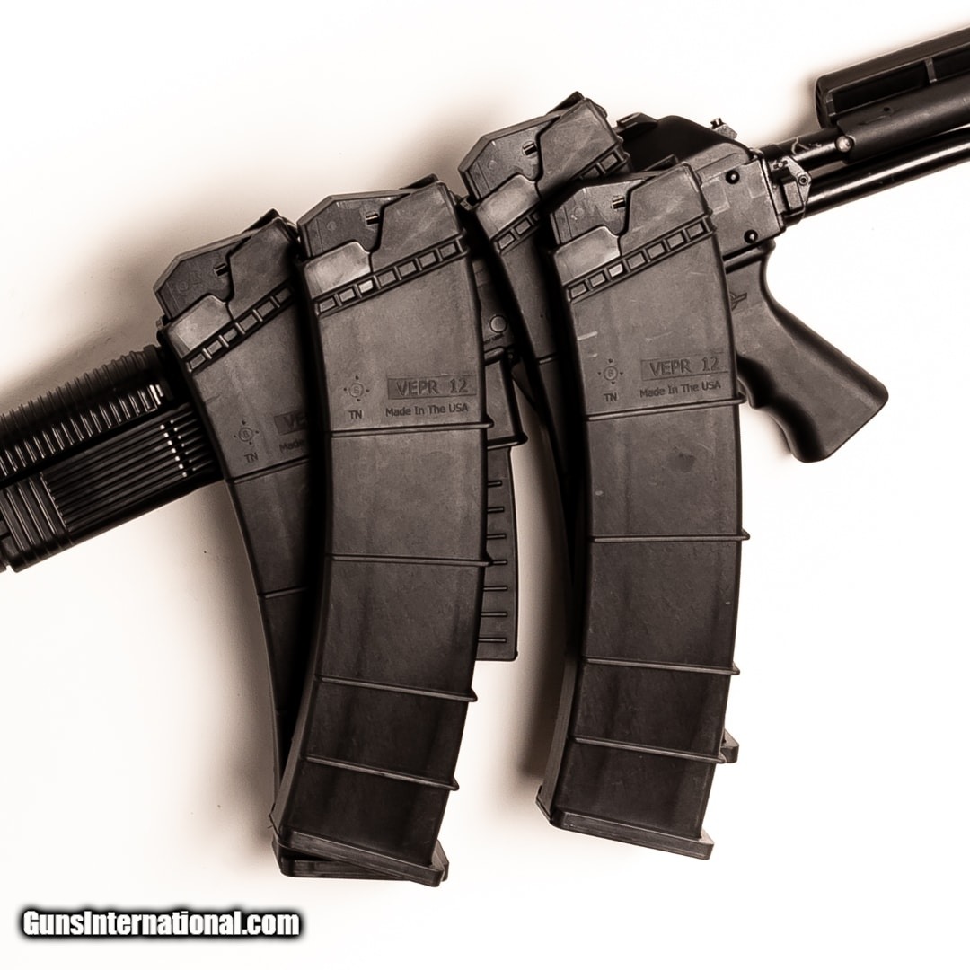 Description: Guns Listing ID: 553869 The MOLOT-Oruzhie LTD. VEPR-12 is an AK-style, semi-automatic, 12-gauge shotgun that is reliable, powerful, and a thrill to shoot. Whether it‚‚s competition use, home defense, or just fun at the range, the VEPR-12 is a solid shotgun that doesn‚‚t disappoint. This VEPR-12 sports a fixed stock, Picatinny rail behind the stock, and AK-style sights. One 5-round magazine and four 8-round magazines are included. SOLD Manufacturer: MOLOT-ORUZHIE Model: VEPR-12 Condition: Used - Certified Barrels: 18 BARREL Gauge Info: 12 GA Finish: BLACK |