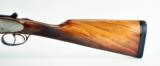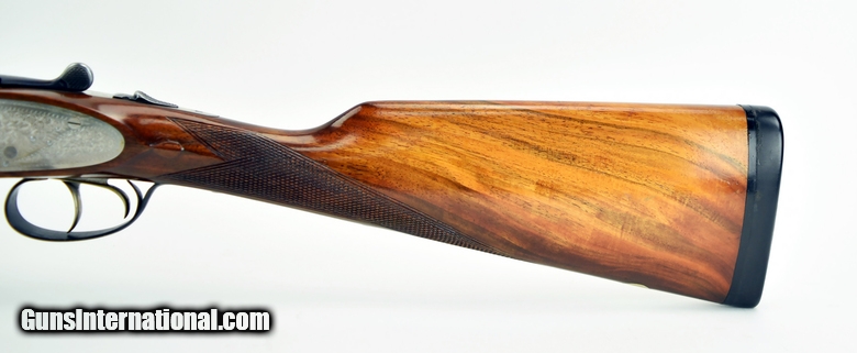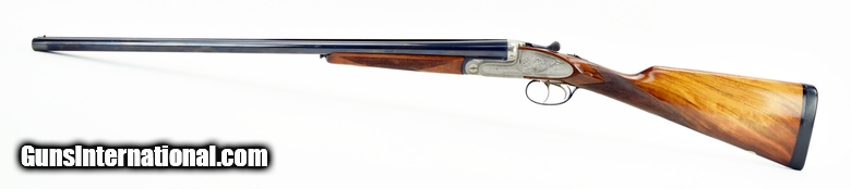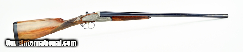 Description: American Arms Derby 20 Gauge shotgun. Spanish made side lock double with 25” modified/improved cylinder barrels. The locks are rose and scroll engraved with coin finish and cocking indicators, double triggers and extractors. Has a straight stock and splinter forend. LOP is 14 7/8” over a recoil pad. Shows light use, overall very good condition.