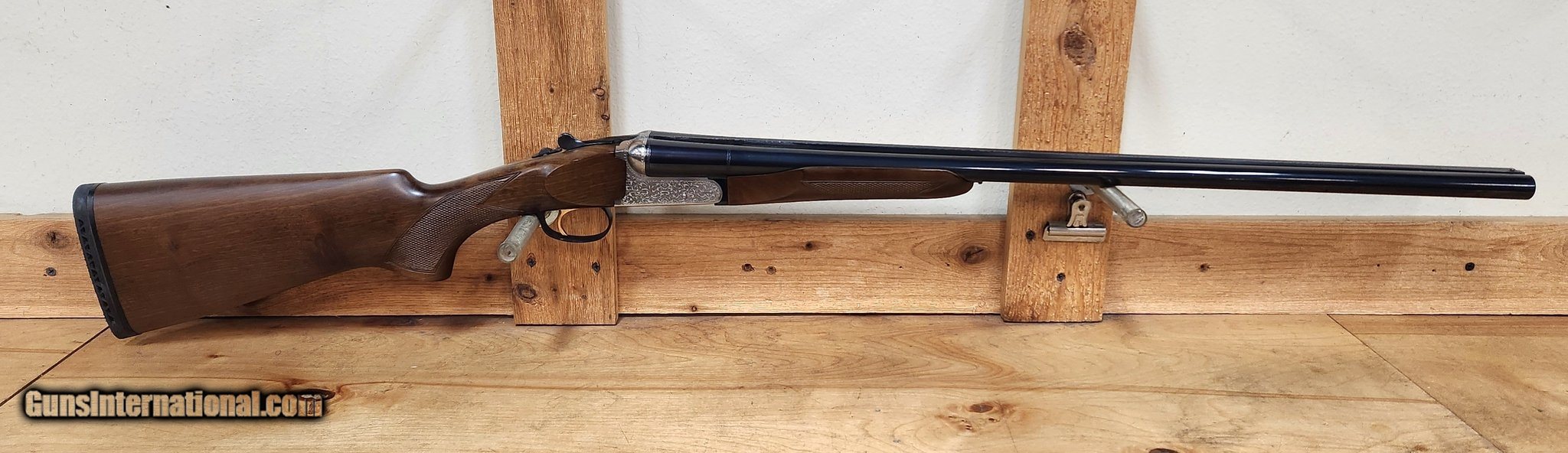 Description: Guns Listing ID: 1308180 Nice side by side shotgun made in Spain. It features 27.6\" barrels, silver receiver with scroll engraving and inertia selectable trigger. 14.5\" length of pull. Overall nice condition but does have some handling marks on wood and metal. Left barrel is marked \"*\" or full choke and right barrel is marked \"***\" or modified (fixed chokes). Comes as pictured, gun only. SOLD Manufacturer: AMERICAN ARMS CO. Model: Gentry Condition: Used - Non-Certified Barrels: 27.6 BARREL Gauge Info: 12 GA Finish: BLACK /W WOOD STOCK |