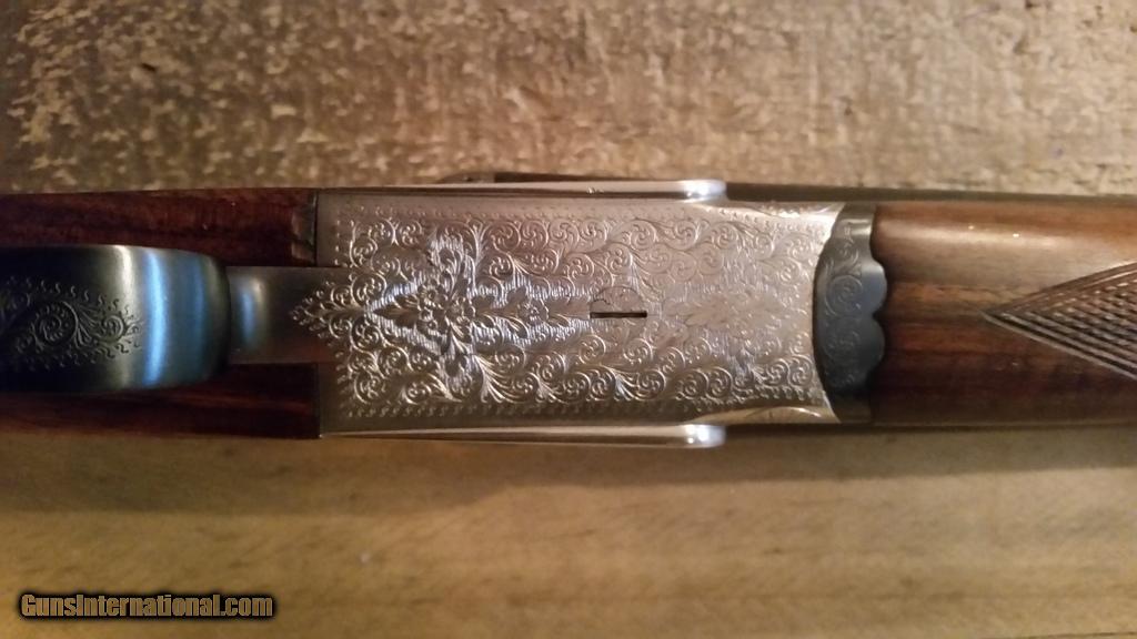Description: Refinished gun with extremely nice figured walnut. F. Sarriugarte marked on barrels but Armas Erbi "BEST" makers mark on watertable. 5-pin true sidelock with very nicely executed rose and scroll engraving on sideplates as well as engraved fences. Great shooting dimnesions with drops of 1 1/4 and 1 7/8 with a 14 1/2 LOP and a neutral cast. 25 inch barrels choked Mod/Imp, Single, mechanical trigger (not recoil operated), disc set strikers, gas ports, cocking indicators, southgate ejectors, non-automatic safety. Has small chip in forearm near barrel flats that is hard to see. Weight is 6.5 lbs. Great grouse gun! Can send more photos upon request. Price lowered....need to move this one down the rd. SOLD Manufacturer: American Arms Model: Derby Caliber Info: 20 Gauge Chambers: 3 Inch Ejectors: Yes Condition: Very Good - Refinished Metal Condition: Very Good Wood Condition: Very Good Bore Condition: Mirror Barrels: 25 Triggers: Single - Mechanical Gauge Info: 20 Rib: Raised Weight: 6.5 LBS Sights: Bead Manufacture Date: 1986 Chokes: M/IC Engraving: Rose and Scroll. Item Location: Ohio |